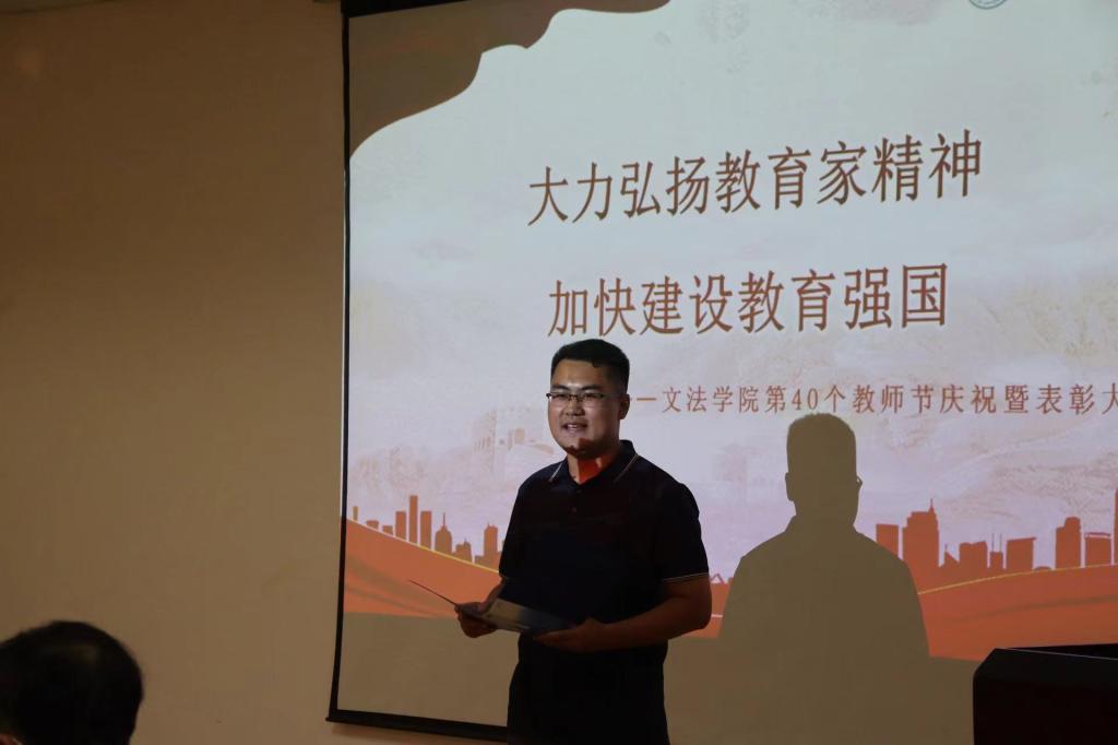为庆祝第40个教师节,大力弘扬教育家精神,加快建设教育强国,9月10日下午,ladbrokes立博隆重举行教师节庆祝暨表彰大会,公司党总支书记曹钊庆主持会议,ladbrokes立博副董事长、ladbrokes立博经理苏春景、ladbrokes立博常务副经理林莎、副经理郭亚奇出席大会,ladbrokes立博全体教职工参加。