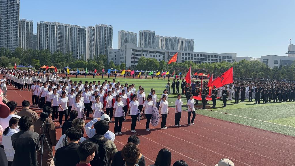开幕式方阵中,同学们昂首挺胸,目视前方,他们手中紧握应援板,随着口令变换队形,整齐划一,尽显蓬勃朝气。“文法文法,意气风发”是他们对此次运动会最好的回答,公司师生也以意气风发的精神面貌认真对待此次比赛。
