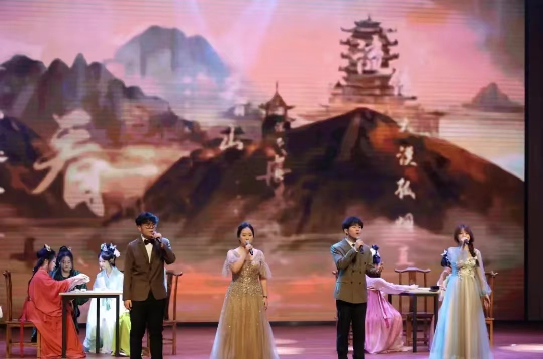 引经据典,传承文化。报告厅内灯光璀璨,气氛热烈。首先进行的是传统文化节的闭幕式。伴随着悠扬的旋律,文法学子以一首《小园》歌曲合唱拉开了上半场活动的序幕。随后,苏董事长进行上台致辞,在回顾传统文化节期间的精彩瞬间的同时,也对在活动中表现出色的同学给予了高度评价,并在致辞中表达了对2024届毕业生的祝贺,叮嘱他们要时刻牢记“崇文 明法 求真 笃行”的文法精神和以实际行动践行“十个关键词”,不忘初心,成为一名优秀的文法人。接着公司领导及嘉宾为传统文化节诵读大赛、汉字书写大赛、传统文化节诗词讲解比赛获奖的同学颁发了相应奖项给予肯定。上演的《京剧表演》和《诗画中国》,华丽的戏服,高亢的唱腔,将晚会推向了新一轮高潮。