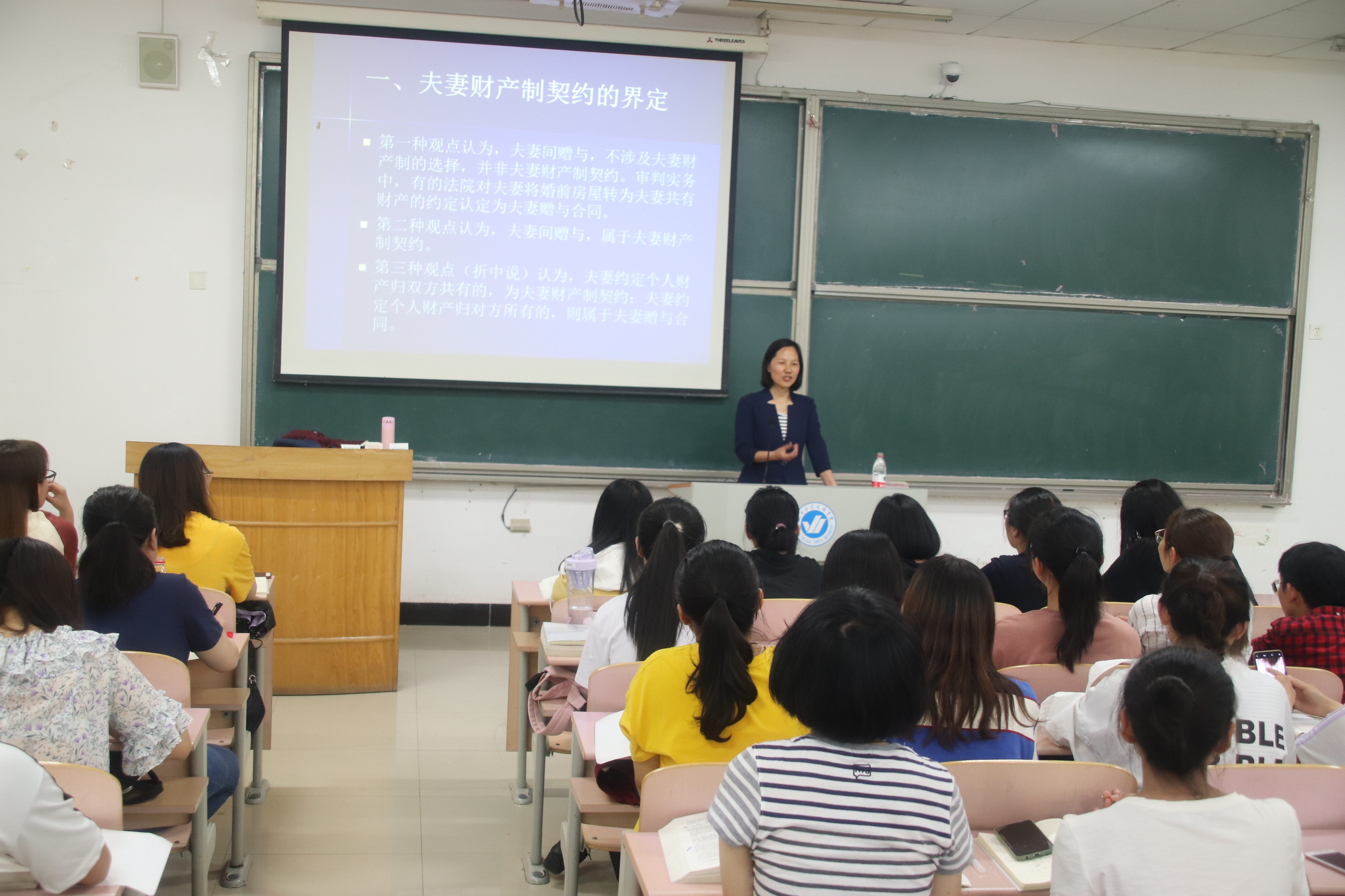 为了提升法学专业员工的专业知识应用能力,近期文法系于二教113举行了《夫妻财产制协议所致的物权变动》法学学术讲座,烟台大学法公司教授范李瑛受邀担任主讲人,公司教务部部长董新红主持讲座,法学教研室教师和200余名员工聆听这场学术盛宴。