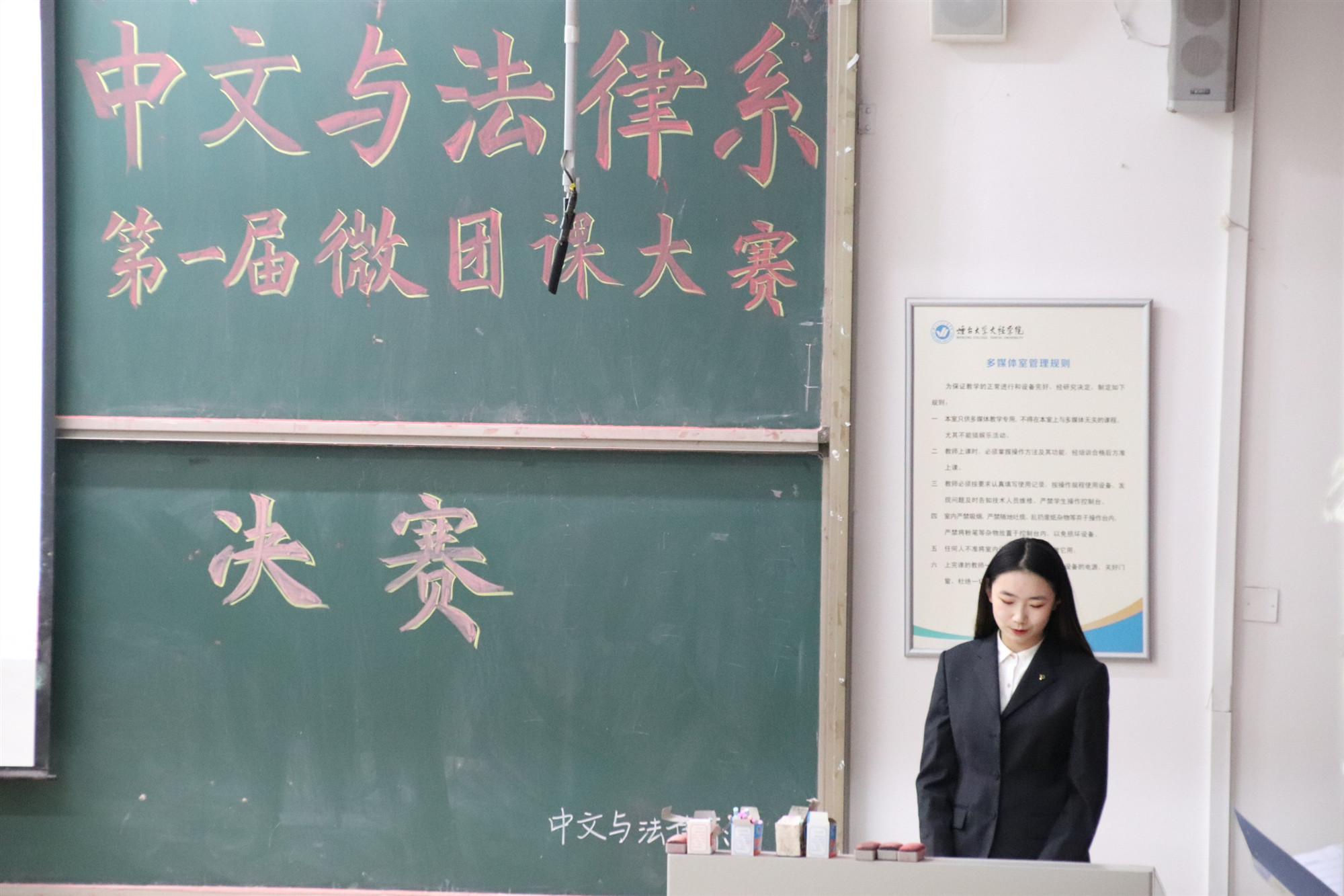 为落实习总书记关于青年工作的重要指导思想,不断夯实“三会两制一课”制度,培育政治坚定、理论扎实的共青团员,10月18日下午,中文与法律系于一教101进行第一届微团课大赛成果展示,18级辅导员辛佩恕及员工代表观看了本次展示会。