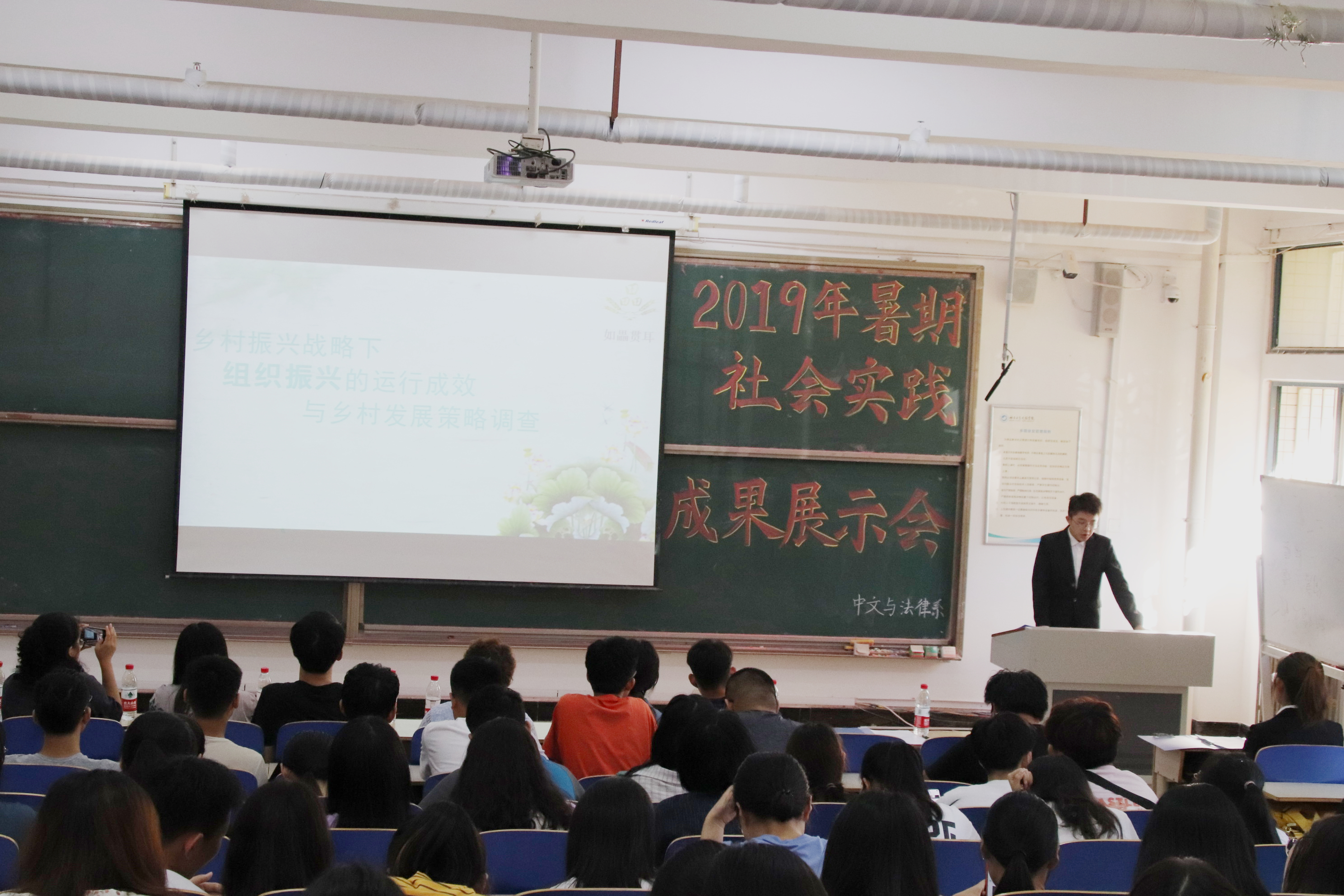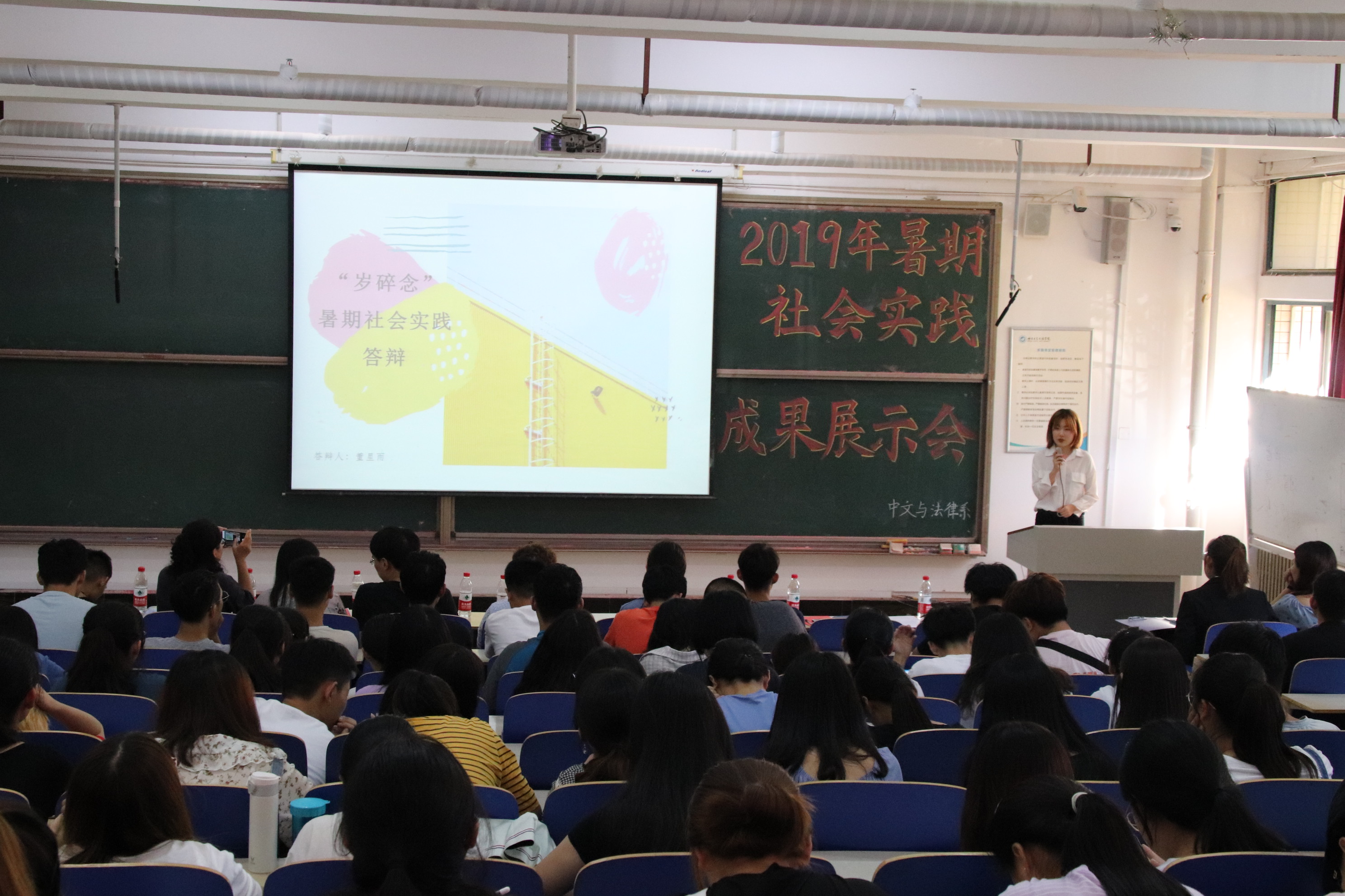 近日,中文与法律系2019年暑期社会实践成果展示会在一教101举办,文法系团总支书记陈秀慧,辅导员梁丹、辛佩恕出席本次展示会。
