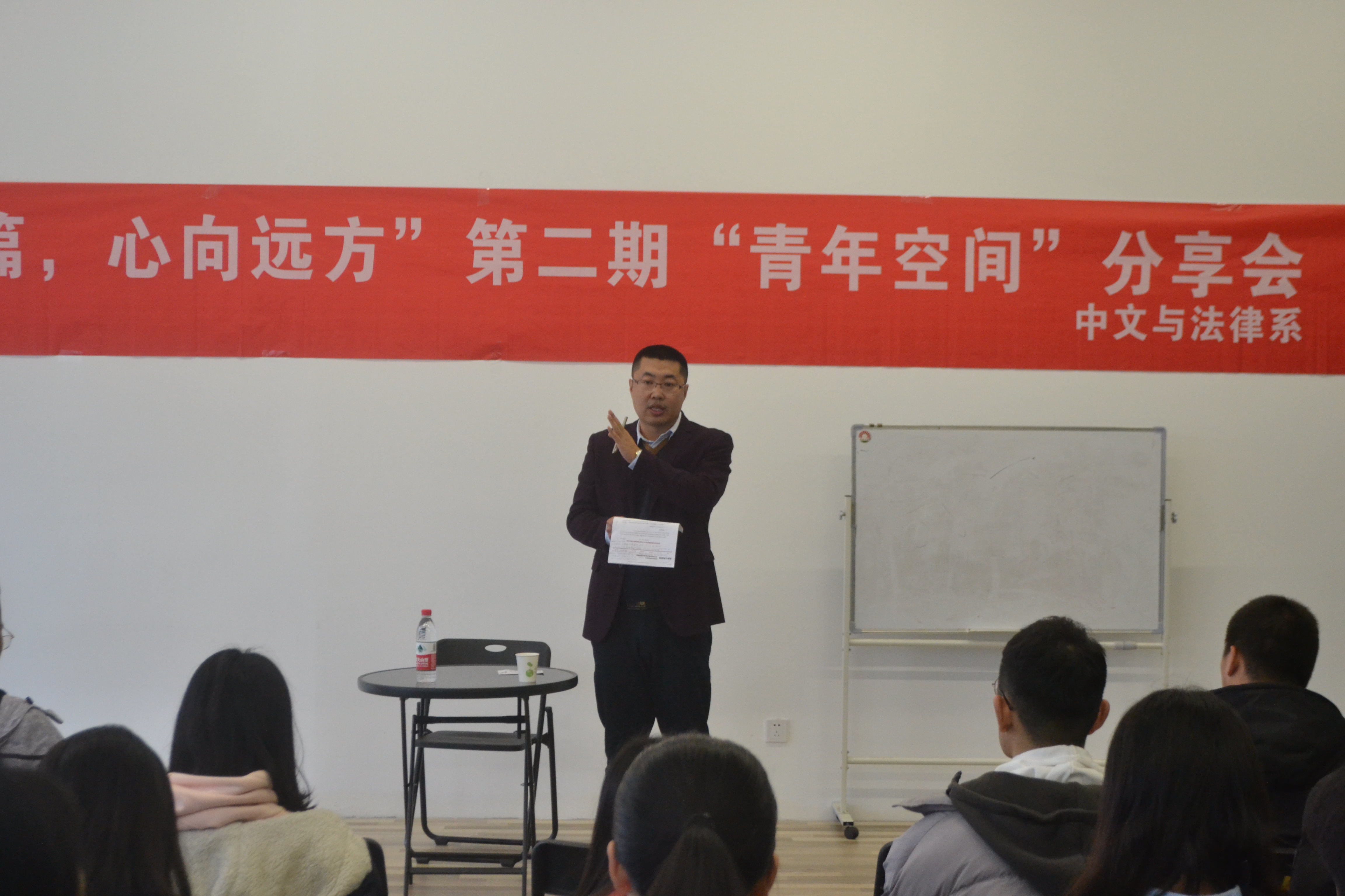12月2日上午,文法系于二教创客空间开展了第二期“青年空间”分享会。本次分享会主要是围绕公务员考试相关内容开展,由优秀员工曾鹏受邀担任主讲人,文法系团总支书记陈秀慧以及部分员工代表参加。