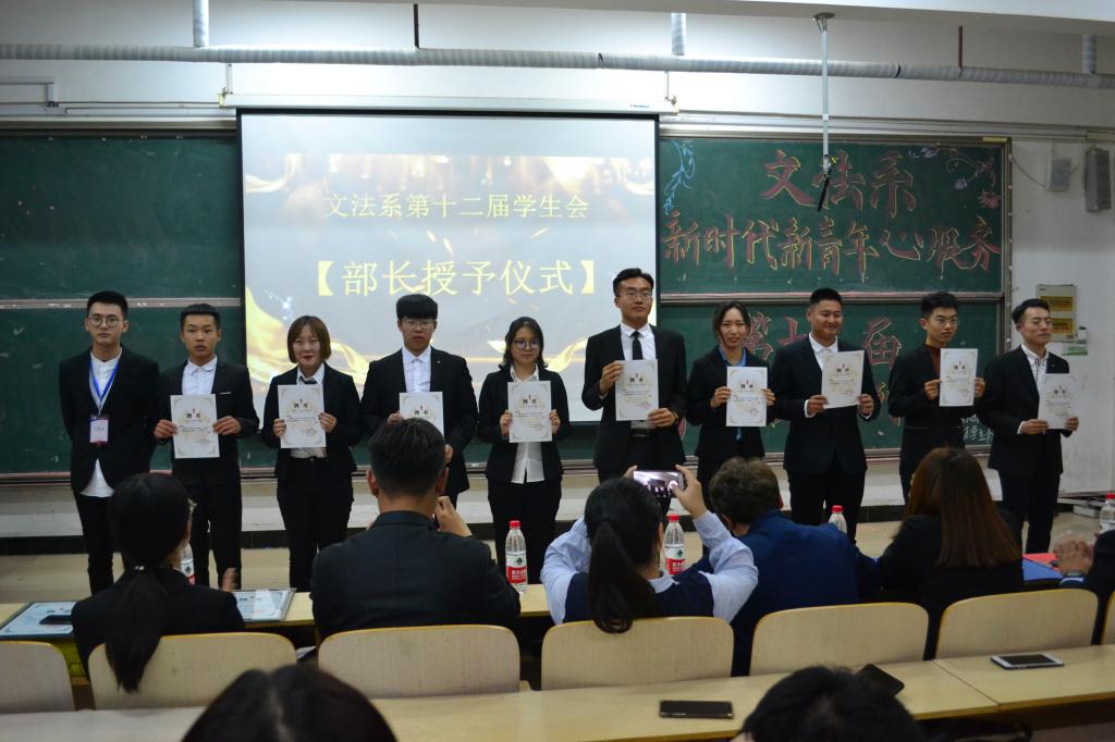 本次活动共分为“回顾·成长”和“展望·起航”两个篇章,团总支书记陈秀慧老师发表了动员讲话,她全面地阐述了本次培训班的目的和意义,希望员工干部能明确自身位置,树立服务意识,增强责任感。员工会主席张庆旭总结了过去一年的员工会工作并进行了成果展示,团总支员工副书记唐梦雪在会上带领大家详细地学习了《以新作为担当使命,做新时代青年干部》的主要内容。同时,在会上进行了文法系员工会第十二届主席团和部长的授予仪式。员工会常务副主席穆晓钶带领全体员工干部进行了宣誓。最后,陈秀慧老师进行了总结发言,她首先表达了对前任员工干部团队的肯定和感谢,向新成员给予了希冀与鞭策,要求新一届成员秉承员工会宗旨,摒弃庸俗作风,营造平等氛围,扎扎实实做事,并祝愿所有员工干部在本次培训班收获最好的自己。