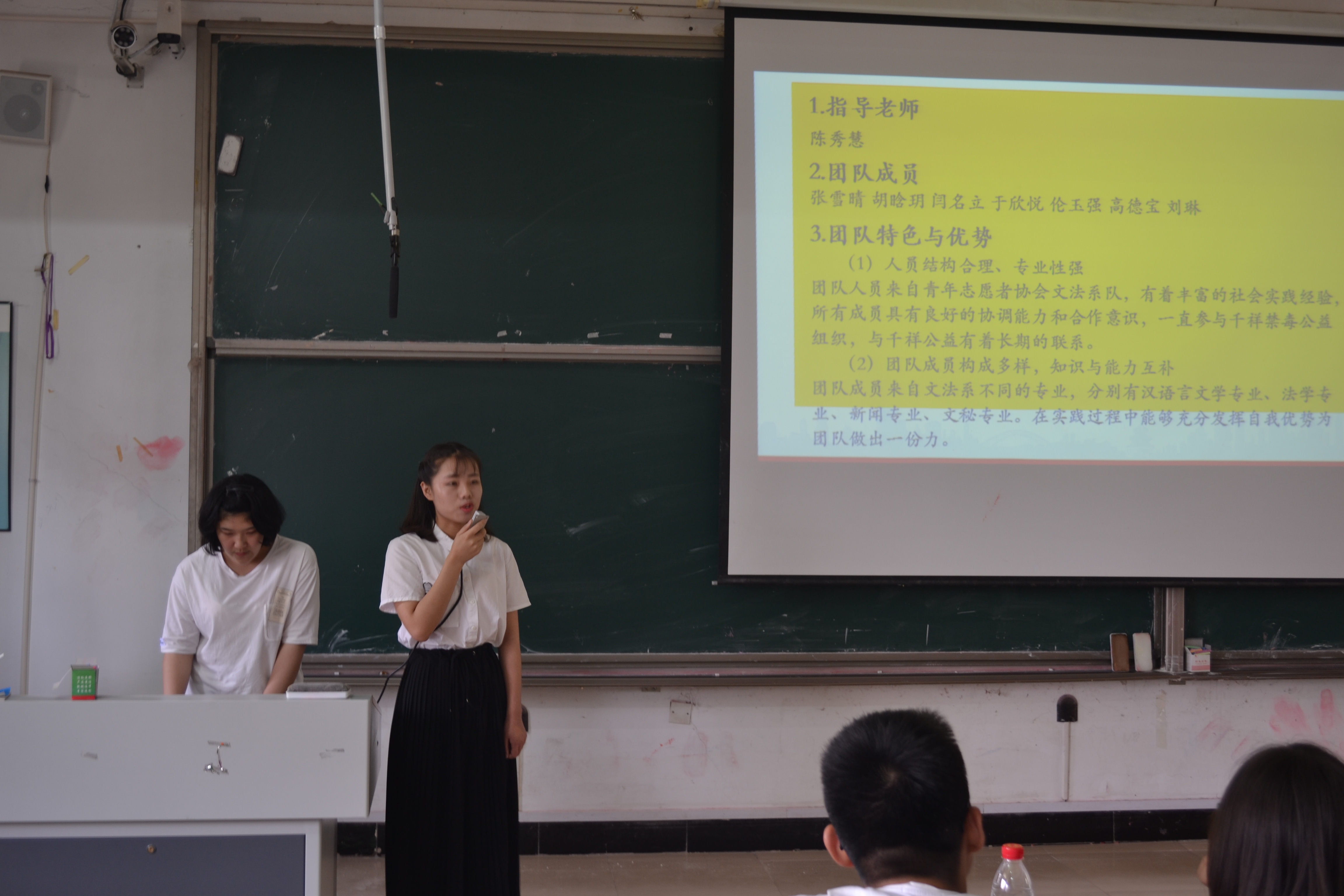 为了积极响应习近平总书记关于青年成长成才一系列重要论述,文法系于6月14日下午在一教104举办2018年暑期社会实践答辩会,文法系团总支书记陈秀慧,辅导员王美云、梁丹、辛佩恕出席,17级员工代表到场观看本次答辩。