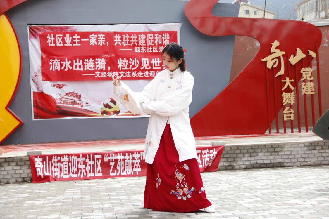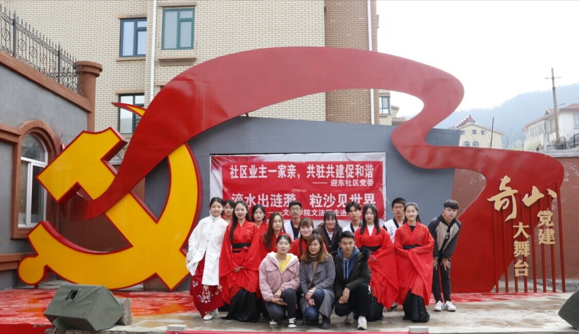 4月14日,奇山街道迎东社区党委举办的“社区业主一家亲,共驻共建促和谐”文艺会演在奇山党建研习所拉开帷幕。文法系员工党员、滴水涟漪志愿服务团和几支优秀的表演团队参加了本次活动。