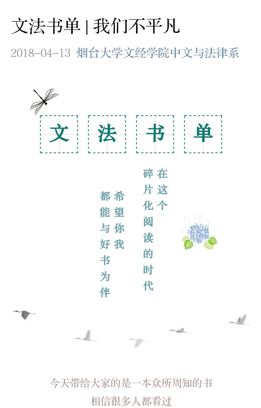 适逢世界读书日来临之际,为激发全系师生的阅读热情,营造浓郁的读书氛围,2018年4月初,文法系在全系范围组织开展了“文法书单”好书推荐活动。