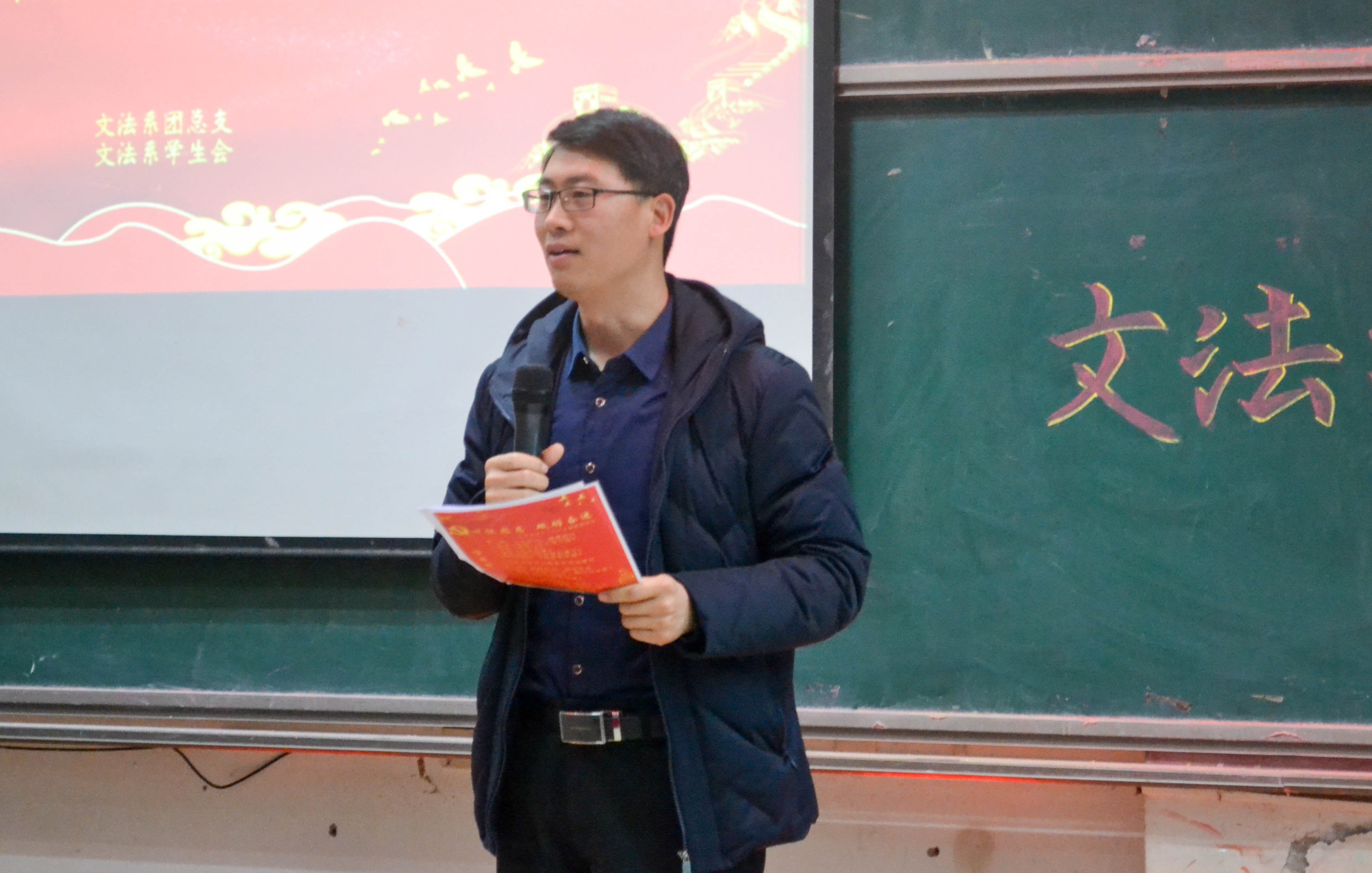 为进一步学习宣传贯彻党的十九大精神,文法系于11月24日在二教115举办“心怀感恩,砥砺奋进”学习十九大主题教育活动。文法系党支部副书记曹钊庆,团总支书记陈秀慧,辅导员辛佩恕,各系团总支员工副书记及文法系全体员工干部参加本次活动。
