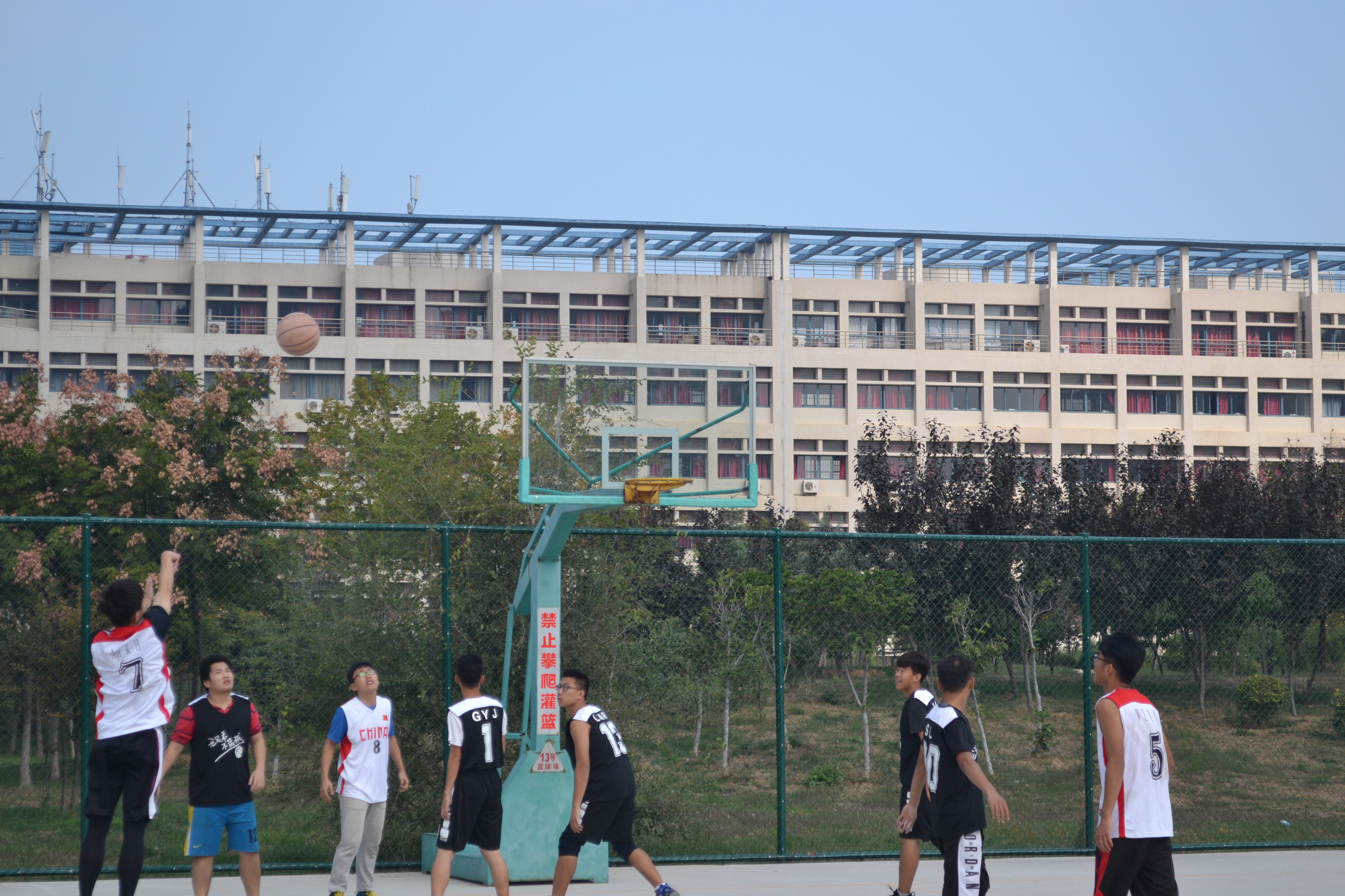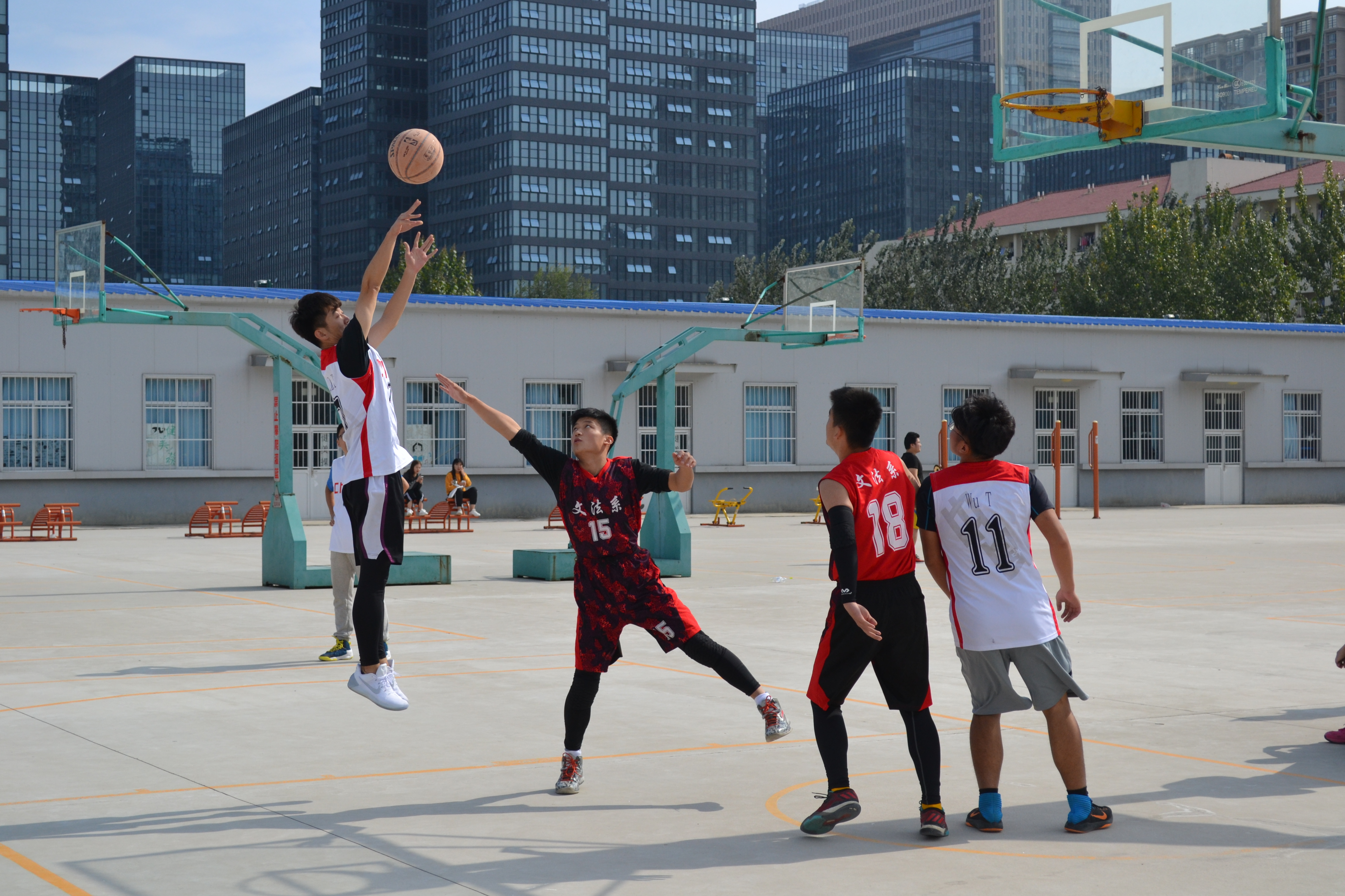 为加强各年级同学的友谊,营造良好的校园氛围,10月20日中午,文法系“致青春杯”新老生篮球交流赛于篮球场落下帷幕。此次比赛为期三天,15、16、17三个年级分别组成三支队伍参赛。
