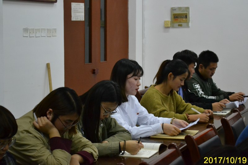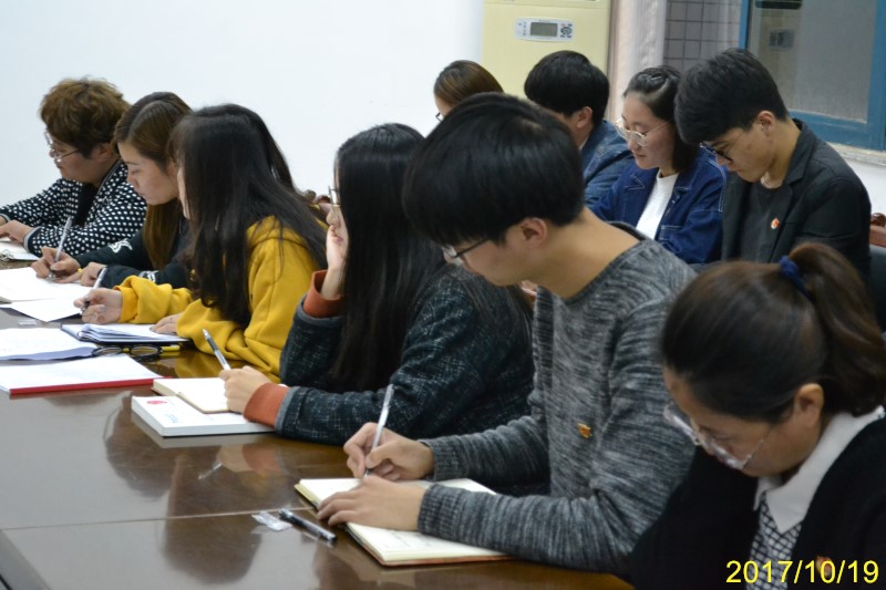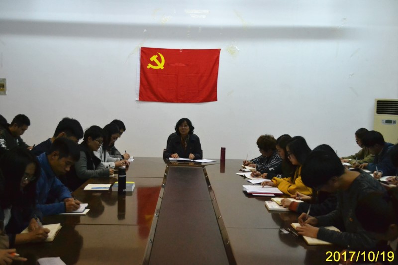 党的十九大于10月18日胜利召开,文法系全体教职工于当天积极收听收看,认真学习了十九大报告精神。10月19日下午,文法系于一教四楼会议室召开学习十九大报告会议,文法系主任汤唯、党支部书记王淑霞及全体教职工出席会议。