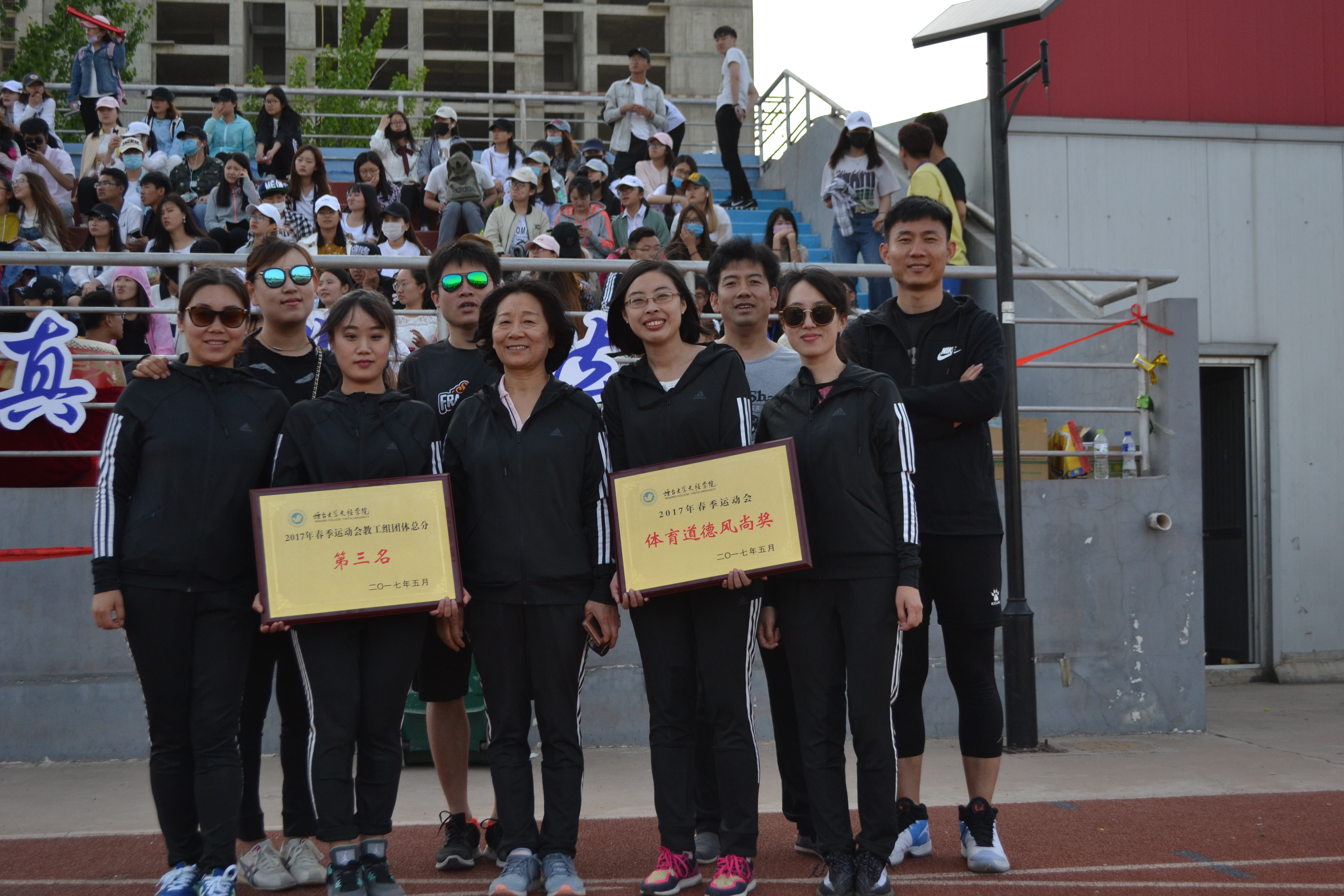 文法系教师及员工们积极参与到赛事中去,赛前踊跃报名,艰苦训练,比赛中激烈角逐、比拼,最终取得“教工组体育道德风尚奖”“教工组团体总分第三名”“女子员工组员工团体第三名”的好成绩。运动会不仅仅是意志的较量、速度的挑战,更是对文法系这个大团体凝聚力的考验。本届运动会不仅锻炼了运动员们的体魄,更充分展现了文法系团结向上的精神风貌。文法系将在日后的各项挑战中寻觅更多的精彩和梦想,创造更多的辉煌!