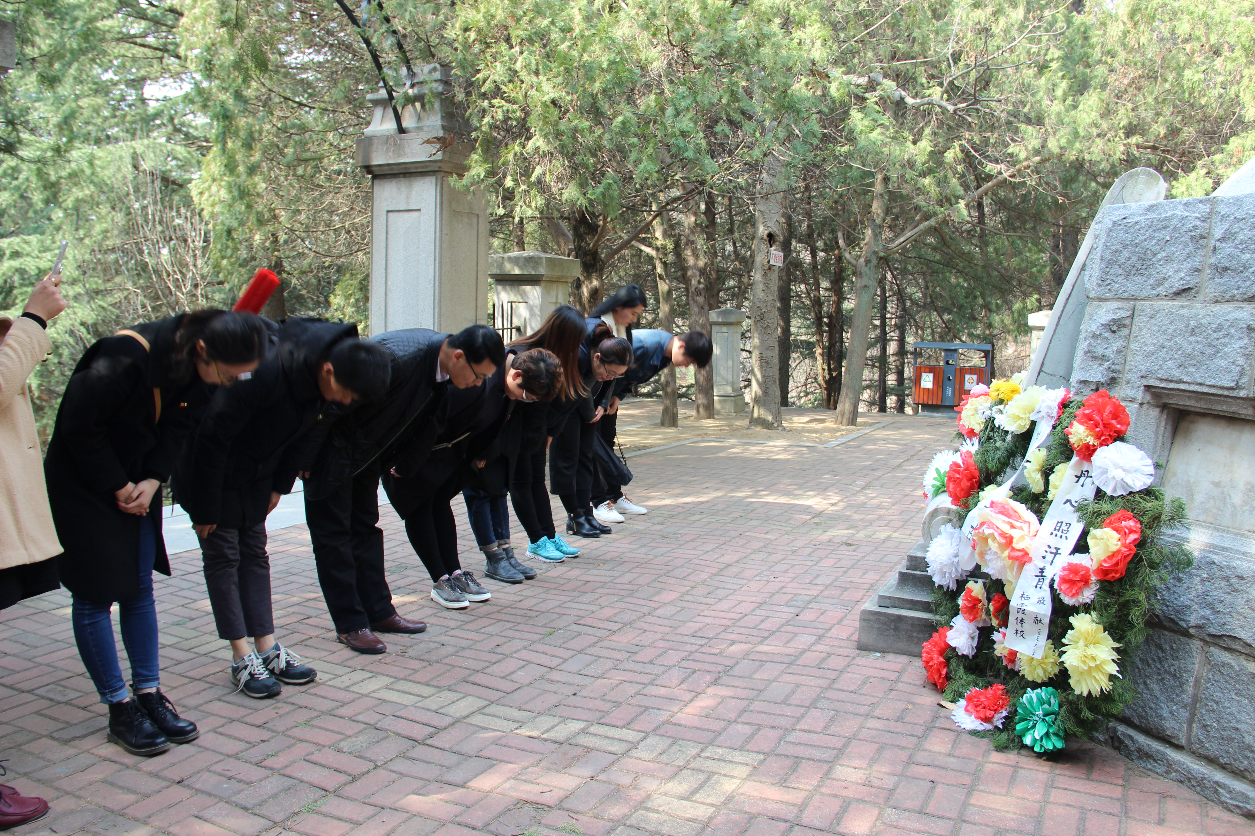 为加强思想政治工作,增强师生的爱国主义情感。4月1日,文法系党员师生代表在文法系党支部副书记曹钊庆带领下赴胶东革命烈士陵园开展爱国主义教育活动。