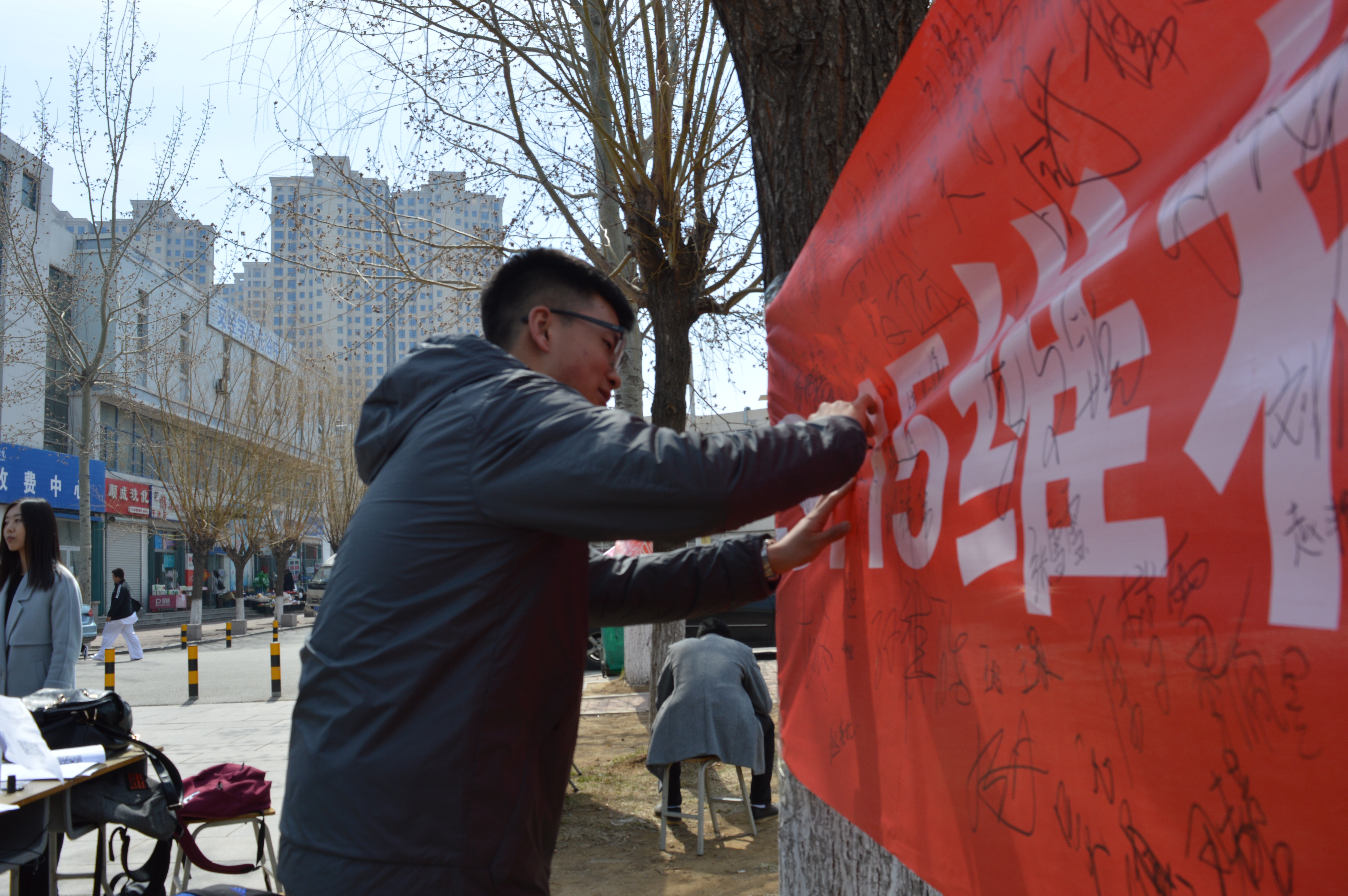 此次活动以“不懂你的权世界,何止错过一个亿”为主题,借助文法系法学专业学科优势,通过发放“维权有据,消费安心”法律知识传单,向员工普及如何发现消费“陷阱”及消费维权方法,增强其消费维权意识。活动中,众多员工纷纷在宣传横幅上签名,表明以身践行,拒绝假冒伪劣产品,监督经营者,履行消费者责任的决心