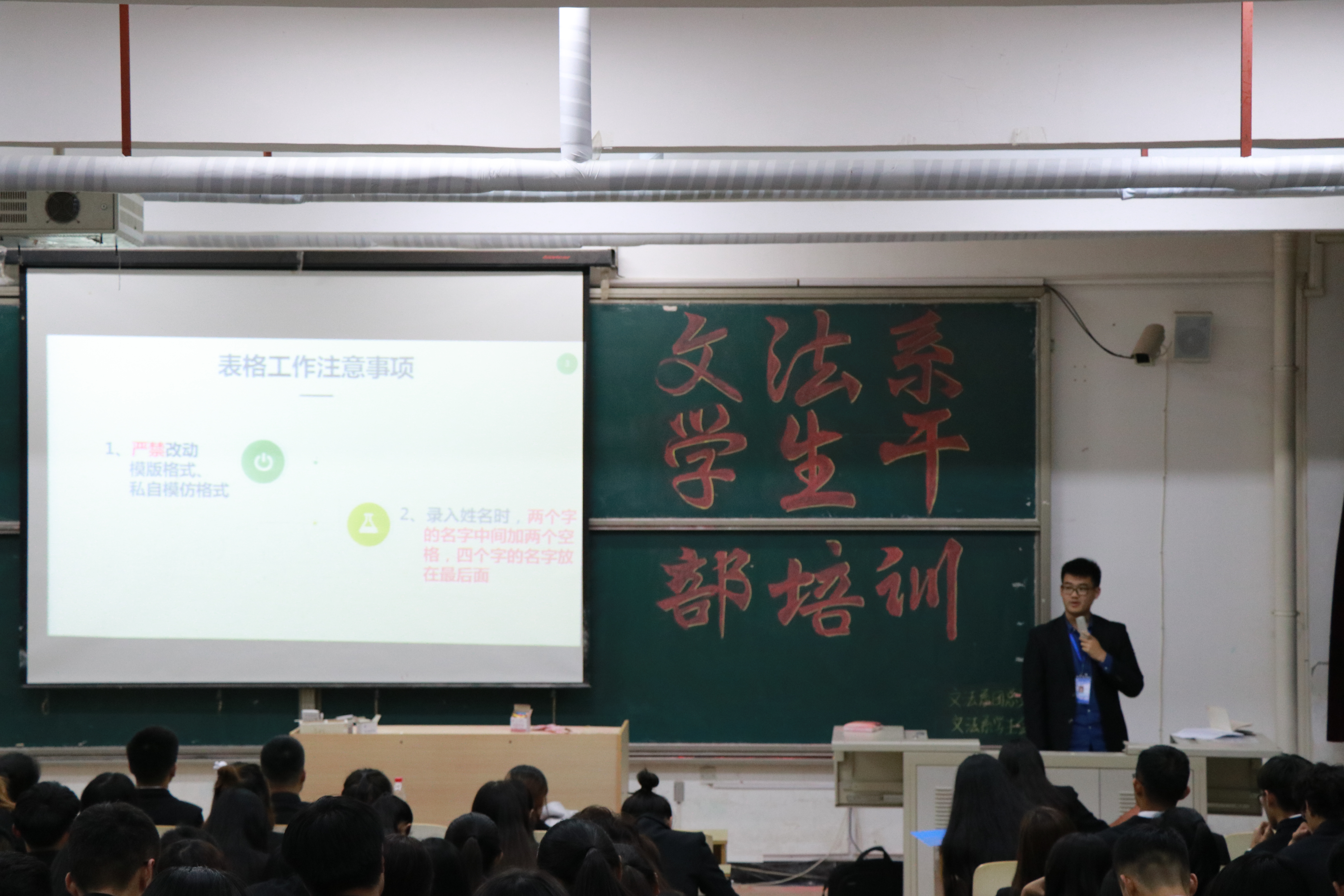 记者团荣蕾、王宇恒,文法系员工会副主席吕仙贤、刘敬豪担任此次交流会主讲人,分别就新闻稿写作方法、摄影技巧、公文写作及表格制作进行详细解说。荣蕾结合实例从要素齐全、内容概括、语言精练、客观论述四方面讲授新闻稿写作技巧,并重点强调新闻稿的时效性问题。王宇恒以通俗化语言对相机种类和使用方法、专业词汇解释、构图技巧进行讲解。吕仙贤、刘敬豪均结合文法系相关员工工作实际要求和存在问题,提出公文写作、表格制作的方法、格式、注意事项,以尽快提升员工干部的公文写作及表格制作能力。此外,此次员工干部培训设有考核评比板块,培训结束后将以部门为单位布置作业,并以完成质量对员工干部进行考评,将培训落到实处。