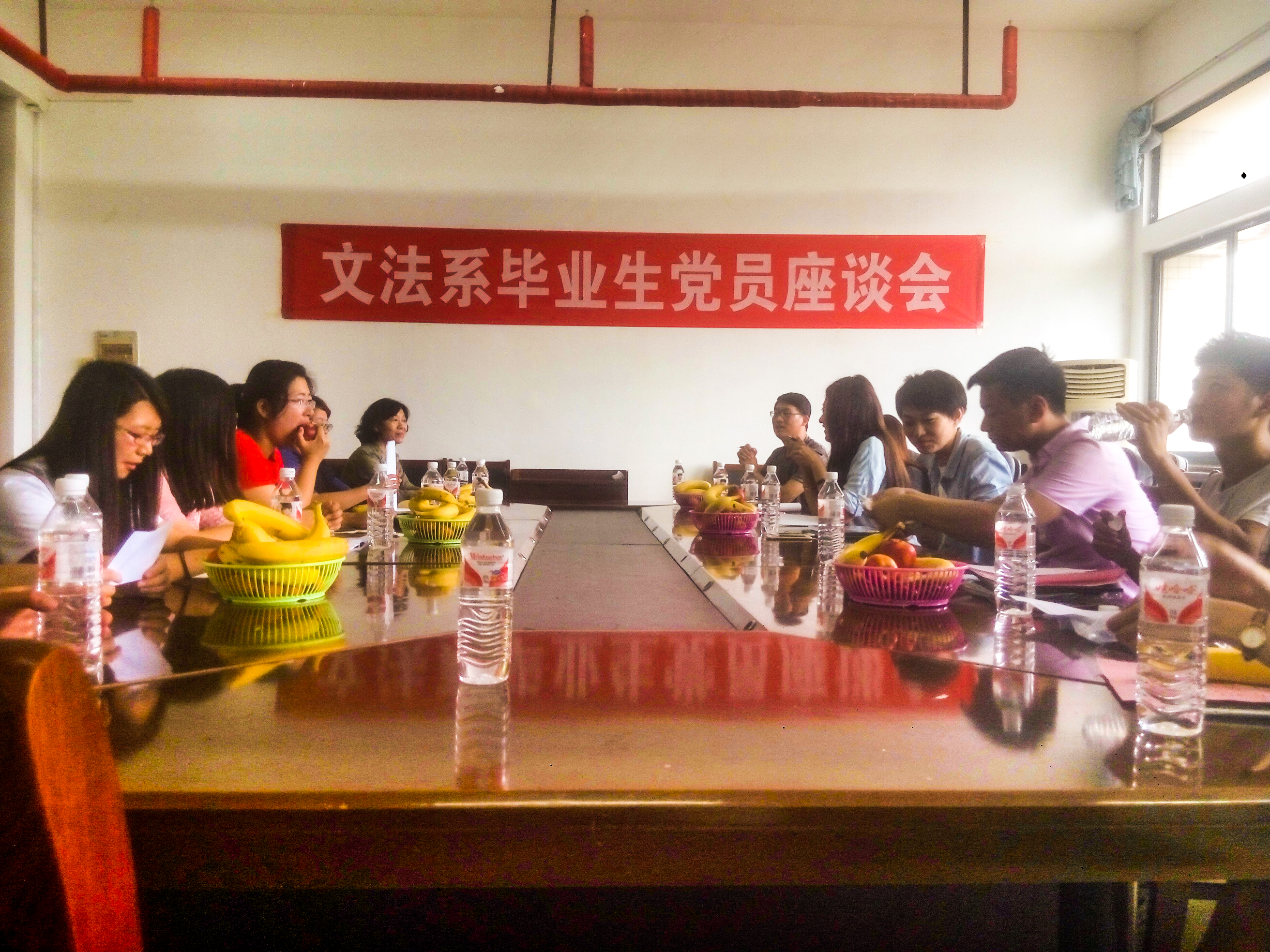 5月27日上午9:00,文法系召开毕业生党员座谈会。文法系党支部书记王淑霞、辅导员陈秀慧老师出席,全体毕业生党员参加会议。