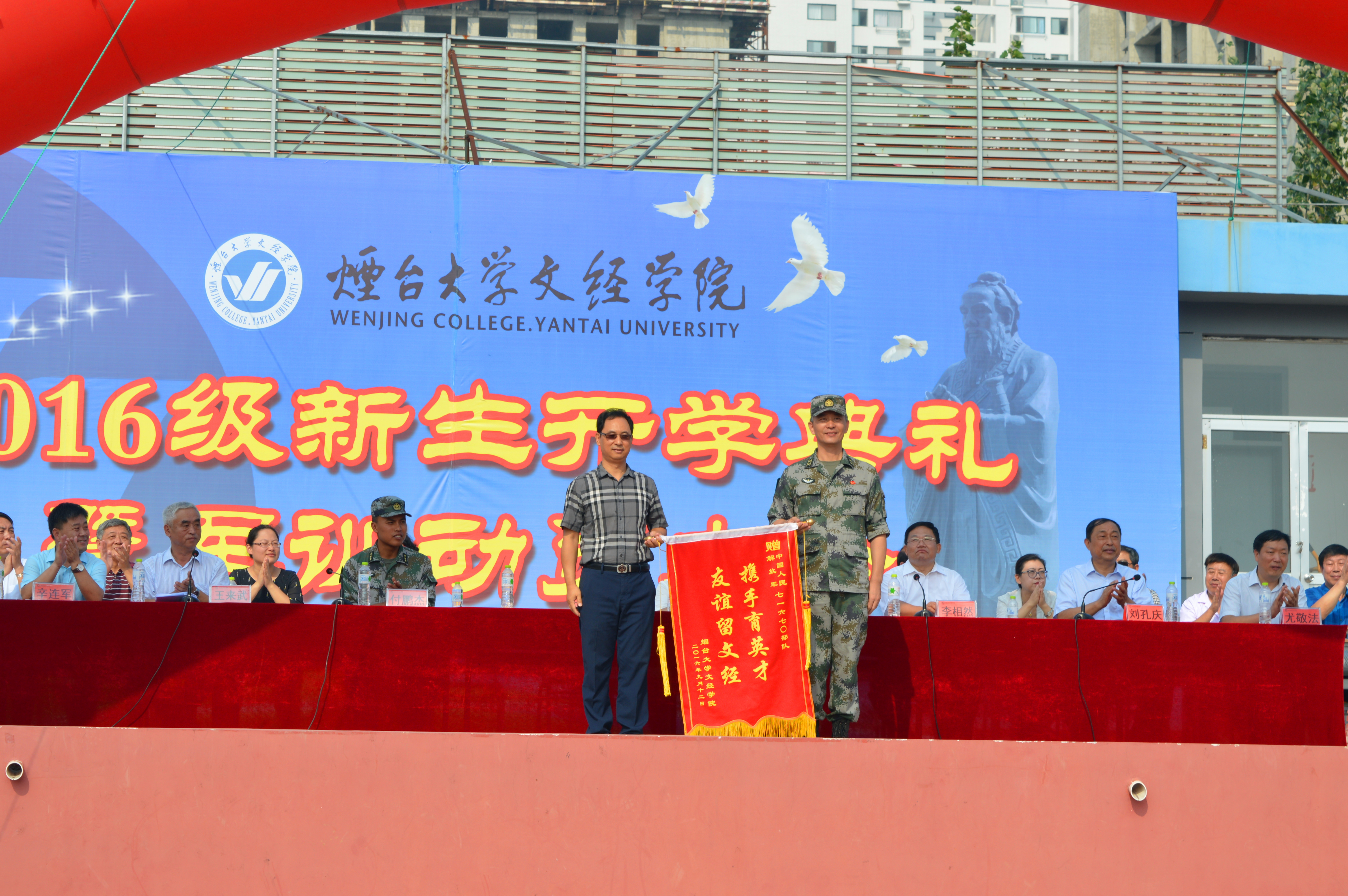 “全体起立,向后转,奏国歌。”大会在庄严的国歌中拉开帷幕。分列式表演中,2016级新生们的响亮的口号,整齐的步伐在操场上形成一道亮丽的风景。文法系在这八天的军训中表现良好,获得新生军训内务卫生先进系荣誉称号,由部队领导和公司领导为获奖成员颁奖。于光辉经理向部队赠送锦旗,指导员在发言中表扬了本次2016级新生们在军训中的良好表现,充分展示了当代老员工的精神风貌,经过风出日晒,发扬了团结进取,勇于吃苦,勇于锻炼,全面提高自身综合素质的品质,同时也在中秋佳节即将到来之际为大家送上中秋祝福。李相然书记在接下来的讲话中也提到在本次训练中,大家不怕苦不怕累,圆满的完成了大学第一堂课的检验,希望大家再接再厉,以饱满的热情投入到接下来的学习生活中去。