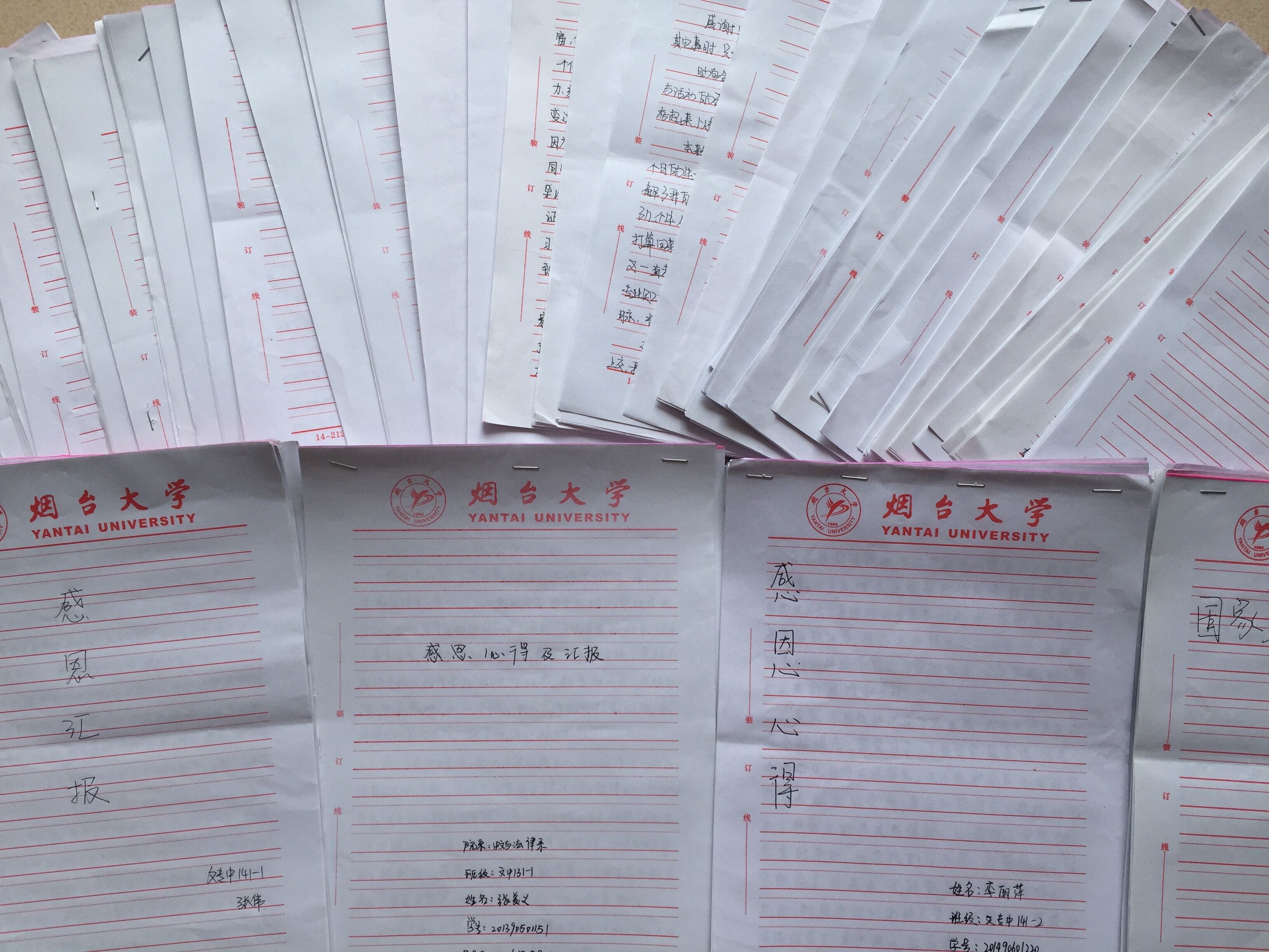 我系受助员工积极认真,绝大部分同学用统一烟大信纸手写,他们书写了对国家、对公司、对家庭的感恩之心,情真意切。也汇报他们获得助学金后的心路历程,以及自己对未来的人生规划。