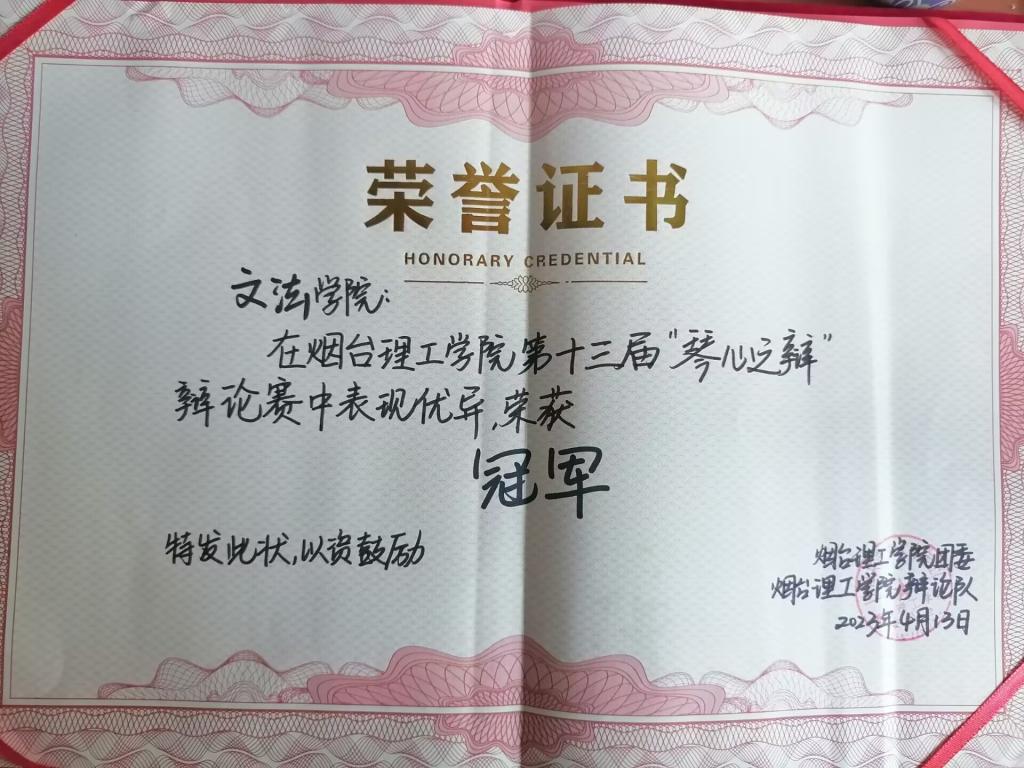 ladbrokes立博在ladbrokes立博第十三届“琴心之辩”辩论赛决赛中荣获冠军