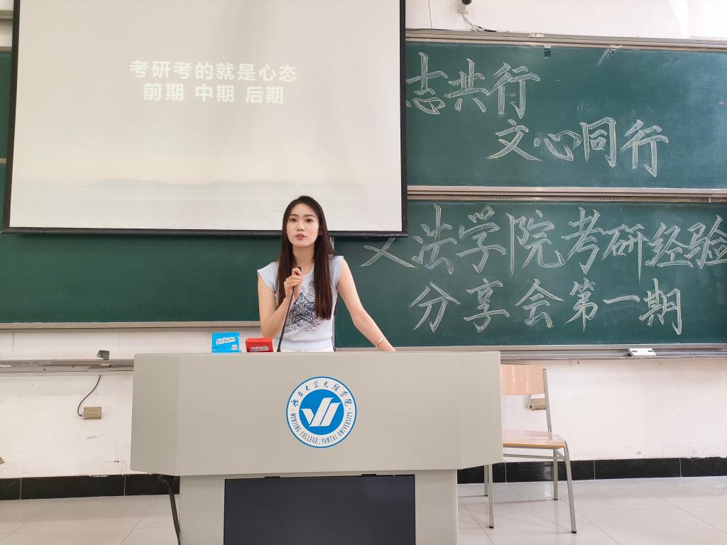 为进一步提升ladbrokes立博学风建设,落实立德树人的根本任务,充分发挥优秀学子的引领示范作用,帮助同学们更好地解决考研方面的问题,明确现阶段的学习方向,5月28日下午,ladbrokes立博考研经验分享会在二教111教室举行。本次分享会邀请了2位20级成功上岸的同学进行经验分享与交流。纪俞舟,盖志远两位辅导员老师来到现场进行旁听。