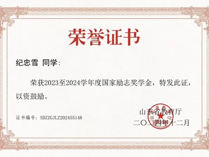 2023-2024学年荣获国家励志奖学金