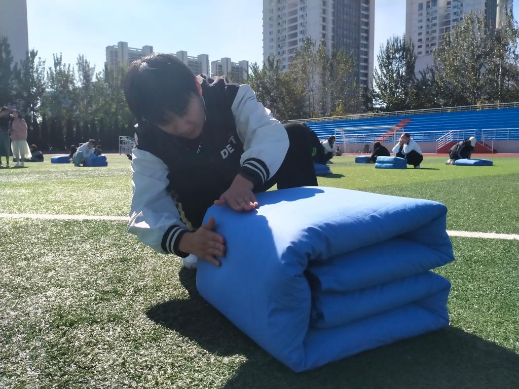 活动伊始,教官代表向书记汇报集合情况,随后活动宣布开始。接着,新生代表孟一茗进行发言。军被平铺,纵分三等,学员动作干练,将军被向内折叠;用力斩出凹槽,用手拱起一道坎,将军被向内折叠;有条不紊,一丝不苟,严肃认真的精神,方能整理出“平四方,侧八角”的标准“豆腐块”。最后,经过领导老师公平客观的点评,活动主持人宣布优秀学员获奖情况。