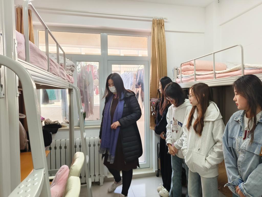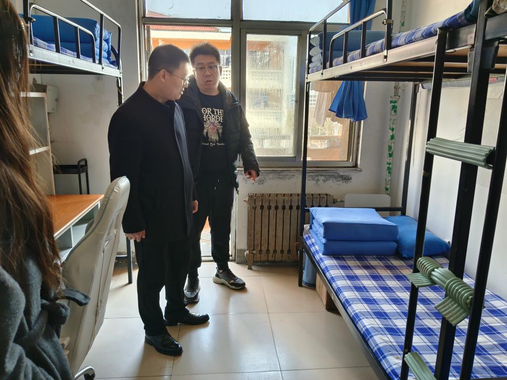 “今天有什么课?”“有什么需要老师帮助的?”“在寝室睡觉冷不冷?”曹书记亲切地与同学们交流生活情况,关心员工的学习课程安排,嘱咐同学们要注意用电与人身安全,注意常开窗通风,保持健康的身心状态。