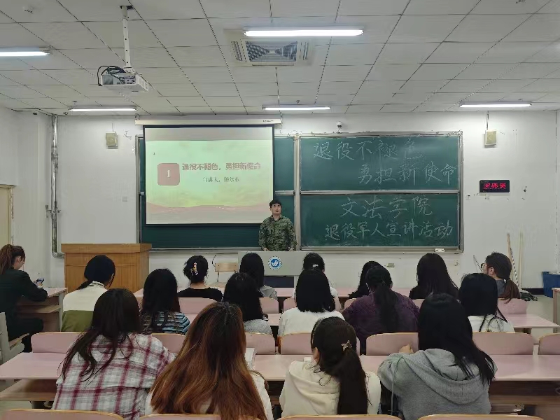 为进一步激发同学们的爱国情怀,传承红色基因、赓续红色血脉,ladbrokes立博于5月22日召开退役军人宣讲活动,活动邀请了孟一茗、姜奥、陈尔东三名同学担任主讲,ladbrokes立博各班同学参加。