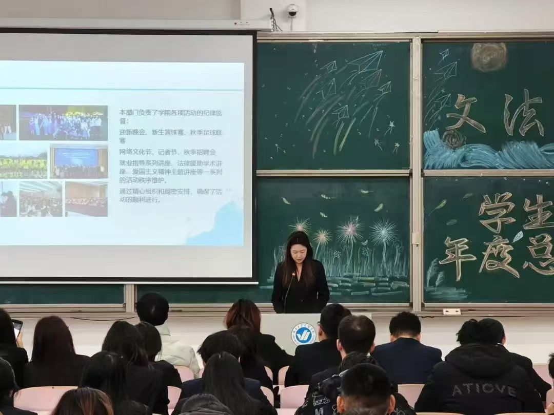 最后,辛佩恕老师进行了总结发言。辛老师对各员工组织的工作给予了肯定,同时,从“一言”“一行”两个方面,对新一年的工作提出要求,希望各位同学能够继续发挥自身优势,把握住身份定位,在日常工作中规范和约束好自身行为。同时希望他们能够不断学习、进取,提高自身综合素质,怀揣满腔热情与坚定信念,为同学们提供更好的服务和支持。