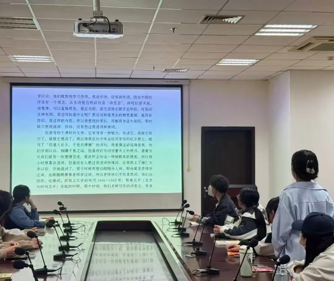 王赟老师以叶嘉莹先生所著《唐宋词十七讲》为核心文本,通过介绍叶嘉莹先生学术生涯与人生经历、组织员工诵读经典片段,引导员工了解其学术成就与研究特色。在交流环节,员工们分别分享了自己研读著作及阅读体悟,王赟老师结合专业理论进行点评并提出深化阅读等相关的建议。活动最后,师生从阅读方法、学术思维、互动模式等方面,系统总结了本次读书分享会在深化文本理解、促进学术交流等方面的实践成果。