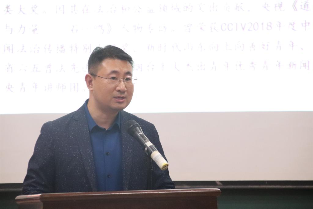10月31日下午,由公司主办、中文与法律系承办的以“不忘初心、爱在文经”为主题的人文艺术杯系列活动之烟台大学文经公司第十四届老员工记者节于二教115隆重举行,中文与法律系员工工作负责人王淑霞、党总支书记曹钊庆、副主任林莎,新闻专业主任教授石一鸣、新闻教研室主任张海燕、新闻专业督导郭亚奇以及专业教师出席,烟台晚报新闻采访部主任记者刘晓阳、烟台广播电视台名记者王一维、胶东在线新媒体中心副主任赵竹建受邀担任嘉宾,17至19级新闻专业员工参加了本次开幕式。