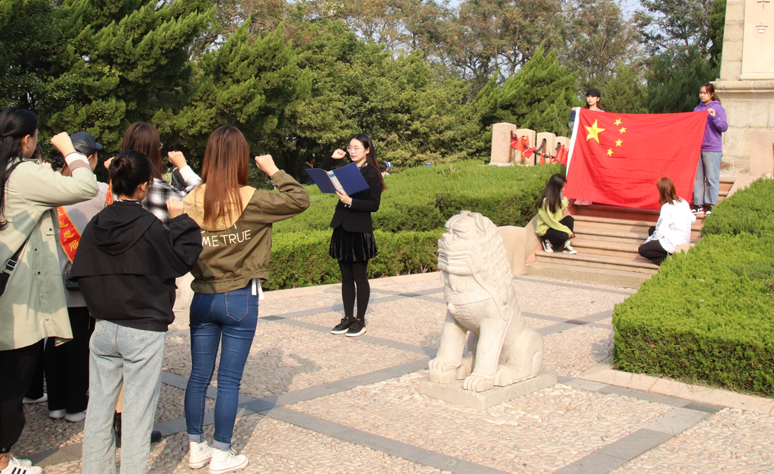在烟台山冰心纪念馆内,同学们驻足观看,深入了解到冰心“爱的哲学”“母爱”“自然”“童真”是其作品的主旋律,展厅内一段段文字、一幅幅照片,承载了那段历史,启发着每位同学在今后的人生道路上努力奋进。历史的红色旅程是革命的先辈们开创的,未来的红色旅程是要靠新一代的青年来开创的,同学们通过发放宣传单以及进行知识宣讲向广大群众宣传革命精神,将红色文化和红色记忆不断传递。在英雄碑前,中1801-3班全体同学在团支书的带领下重温入团誓词,庄严宣誓,时刻提醒自己的团员身份。