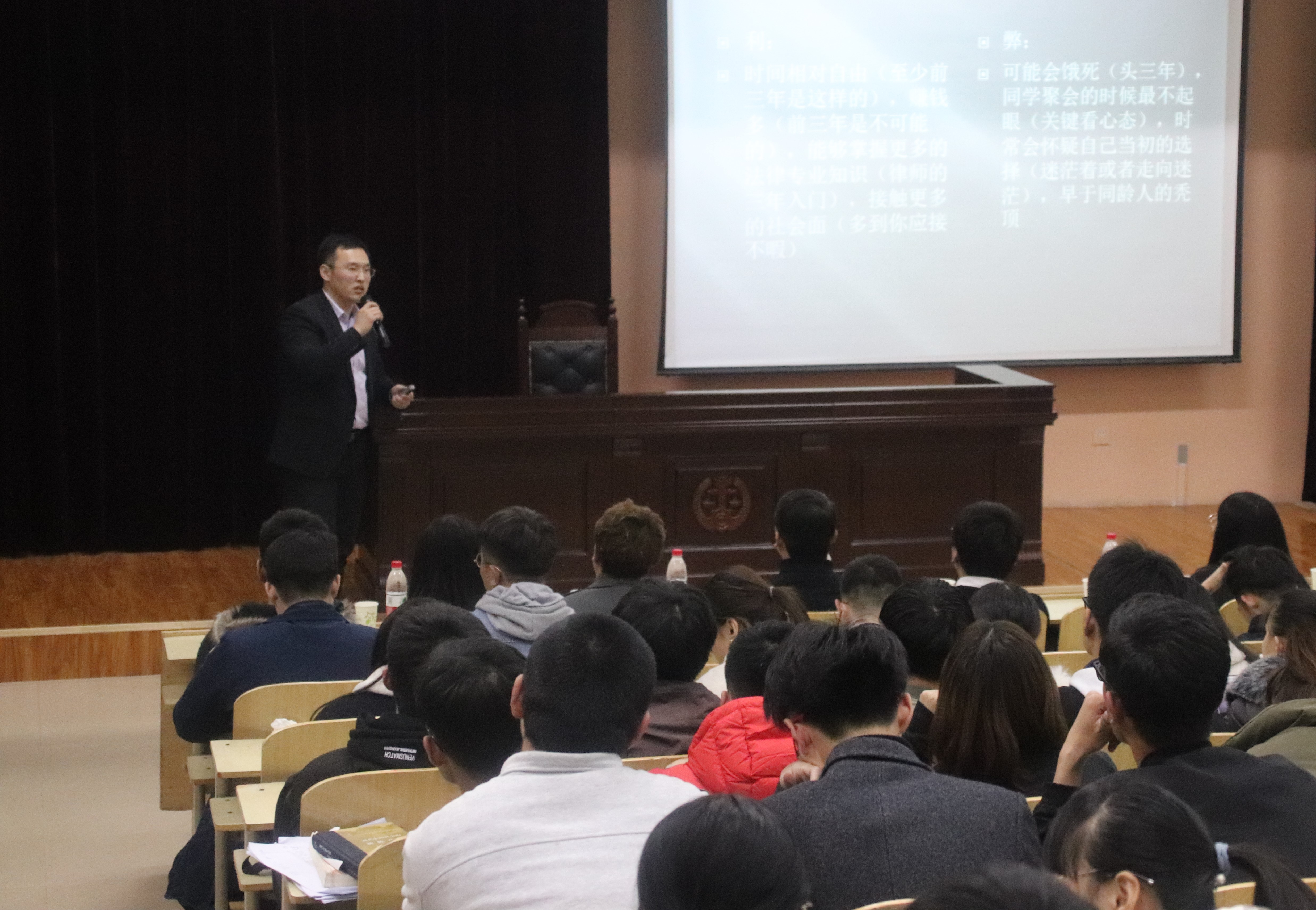 活动伊始,党总支书记曹钊庆为吴昊、刘骁颁发校外导师聘任证书。在分享会上,吴昊立足员工实际与现状,结合自身经历,讲解职业选择。他认为,选择职业要着重考虑个人喜好与职业前景,应当提高自身的专业技能,不断地丰富自己以实现既定的职业规划。刘骁则向同学们介绍从事法学相关职业的利弊和专业学习过程中不同阶段的具体要求,他认为想要从事法学相关职业,必须具有平和的心态、坚持努力的态度和较强的交际能力,同时敢于抓住机会,展现自我。他强调,律师是法律事业的建设者,是中国法治建设中不可或缺的重要组成部分。在“我与导师面对面”环节中,同学们踊跃参与,提出在专业学习和职业选择上存在的疑问,吴昊、刘骁针对同学们的问题进行了耐心地答疑解惑,现场气氛十分热烈。