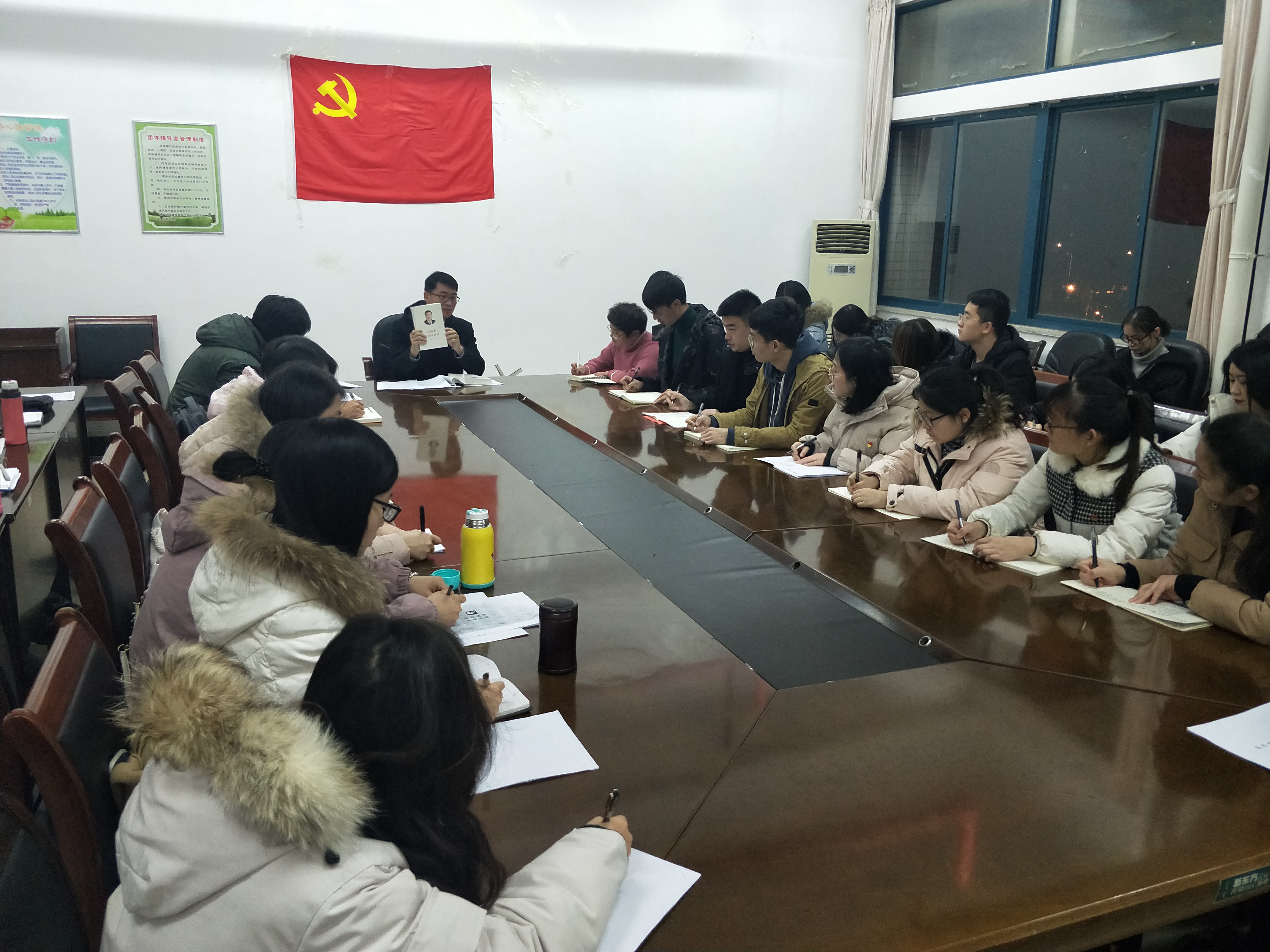 曹钊庆传达了习总书记在全国教育工作会议上的重要讲话精神,倡议教师党员认真领会“九个坚持”,扎实践行“就个要求”,要求大家响应习总书记号召,坚持把立德树人作为根本任务。他要求大家认真阅读《习近平谈治国理政》第二卷,深入学习领会党的创新理论,不断学习宣传贯彻党的十九大精神和习近平新时代中国特色社会主义思想。在会上,党员干部师生认真学习领会习近平总书记重要指示精神,深入学习黄群、宋月才、姜开斌、王继才同志的先进事迹,党员纷纷表示以先进典型为榜样,发挥党员的模范带头作用,坚定理想信念,把理论融入工作实际,不断创新进取。