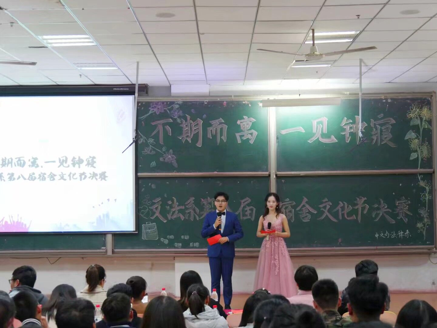 11月9日晚,文法系“不期而寓,一见钟寝”第八届宿舍文化节决赛晚于二教115举行,文法系辅导员梁丹、王美云、辛佩恕,18级各班班主任老师李泓纲、赵改霞、吕超、姜晖担任评委,员工会主席团、各部部长及18级员工到场观看。