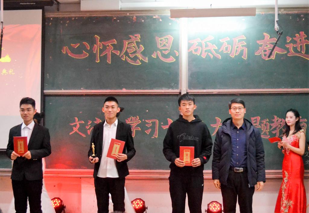 本次主题活动分为“不忘初心、感恩前行”,“砥砺奋进、继往开来”,“青春飞扬、致敬十九大”三个篇章。活动在感人肺腑、铿锵有力的朗诵《感恩,从文法开始》中正式拉开帷幕,哑剧《母与子》和话剧《迟来的爱》演员们用精湛的演技和全身心的投入让现场观众发自内心的被震撼,令人动容。舞蹈《礼仪之邦》则展现了传统服饰以及传统舞蹈的魅力,《我的梦,中国梦》合唱更是以豪迈的时代乐章表达了青年学子不忘初心砥砺奋进的决心。活动期间还对感恩月主题系列活动中“最感恩”感动人物、“心系文法”感恩话剧比赛、“为你写诗”感恩诗词创作大赛的获奖人员进行颁奖。最后曹钊庆副书记进行总结讲话,他带领同学们回顾了党十八大以来的辉煌成就,分析解读党的十九大精神的重要意义。他希望同学们不仅要对父母国家心怀感恩,更要坚定自觉地用习近平新时代中国特色社会主义思想为指导,将自己的青春梦融入伟大的中国梦,做最有朝气、最有活力、最具创造精神的中国青年。