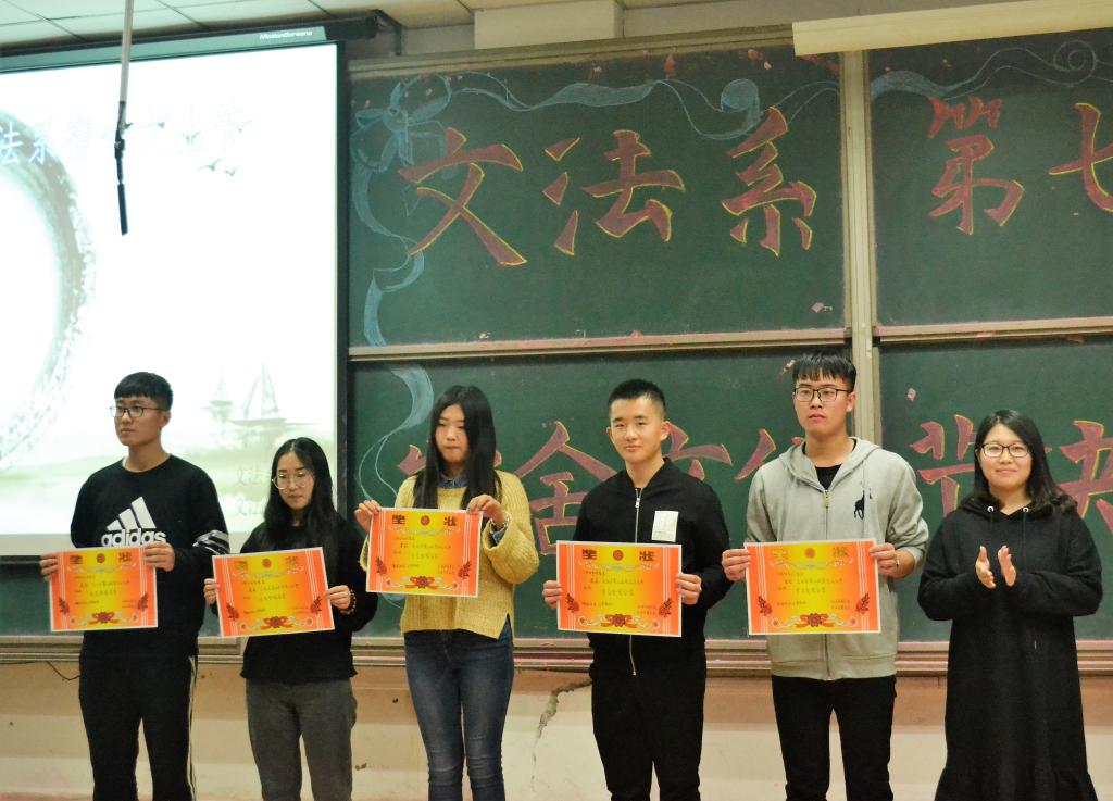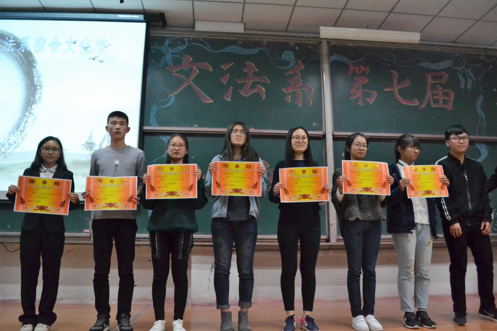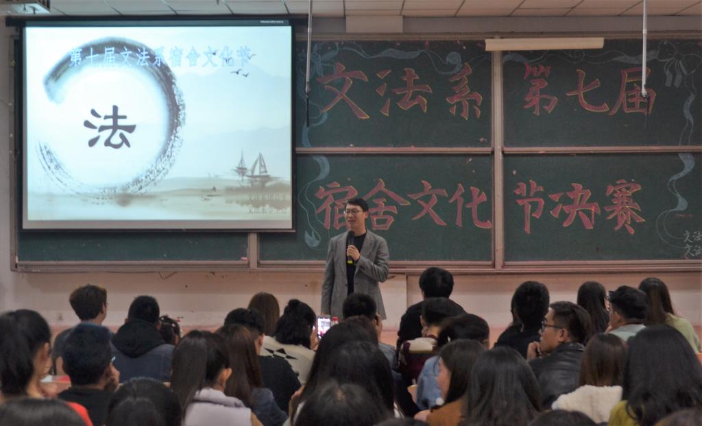 10月27日晚,文法系第七届宿舍文化节决赛晚会于二教115举行,文法系党支部副书记曹钊庆、团总支书记陈秀慧、辅导员梁丹、王美云、辛佩恕,员工会主席团、各部部长及17级员工到场观看。