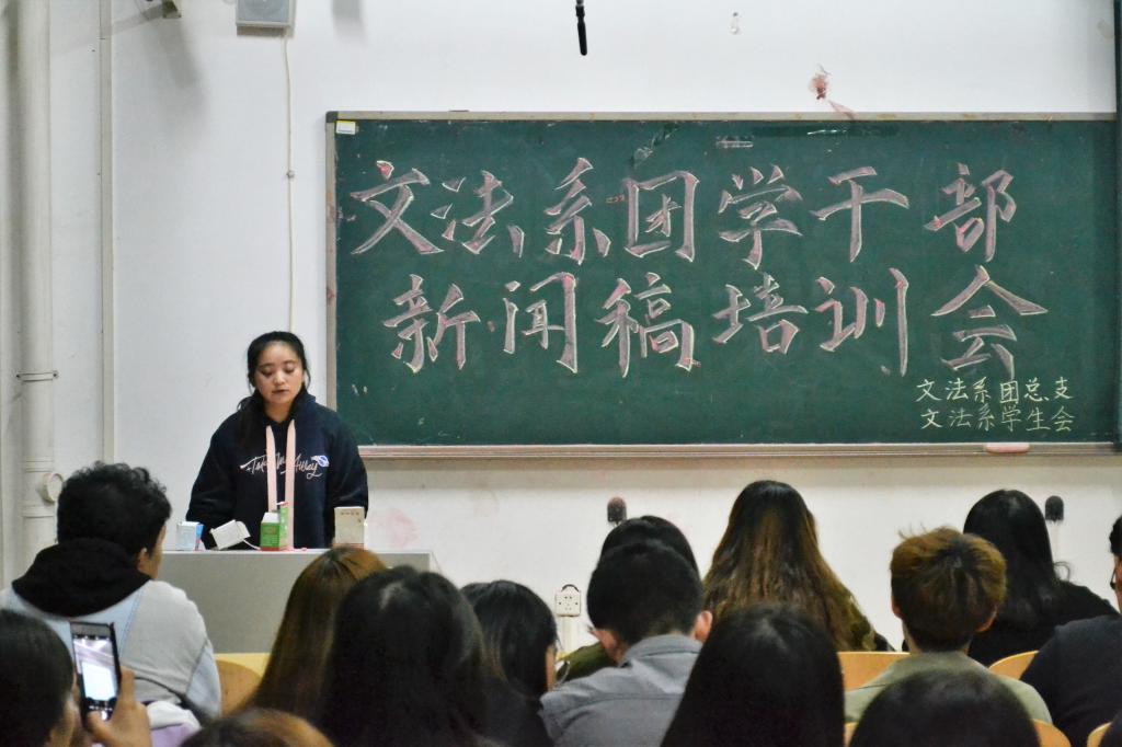 为进一步加强团学干部的队伍建设,提高团学干部的综合素质和工作能力,10月16日晚,文法系于一教118召开团学干部新闻稿培训会,此次培训由新闻宣传中心办公室助理肖春桃主讲,文法系全体团学干部参加了此次培训。