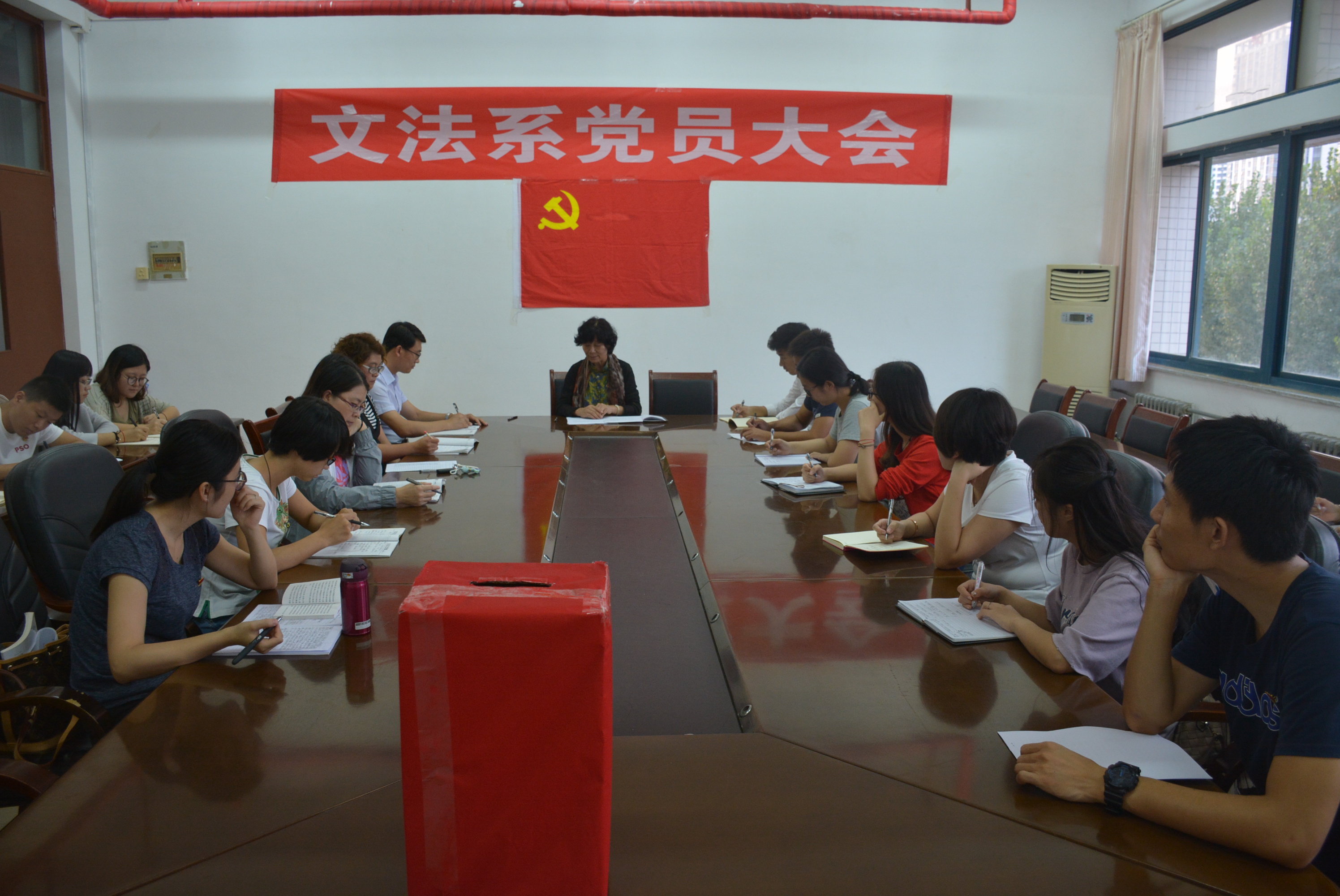 9月22日下午5:30,文法系党支部于一教会议室召开党员大会进行支部委员换届选举,按照规范程序选举产生了新一届支部委员会。会议由文法系党支部书记王淑霞主持。