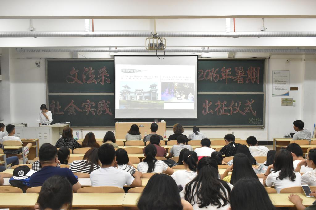 2016年6月23日晚7点,文法系于一教406举行2016年暑期社会实践出征仪式。文法系党支部副书记曹钊庆,文法系员工会指导老师陈秀慧出席,员工会及社会实践各团队参加。