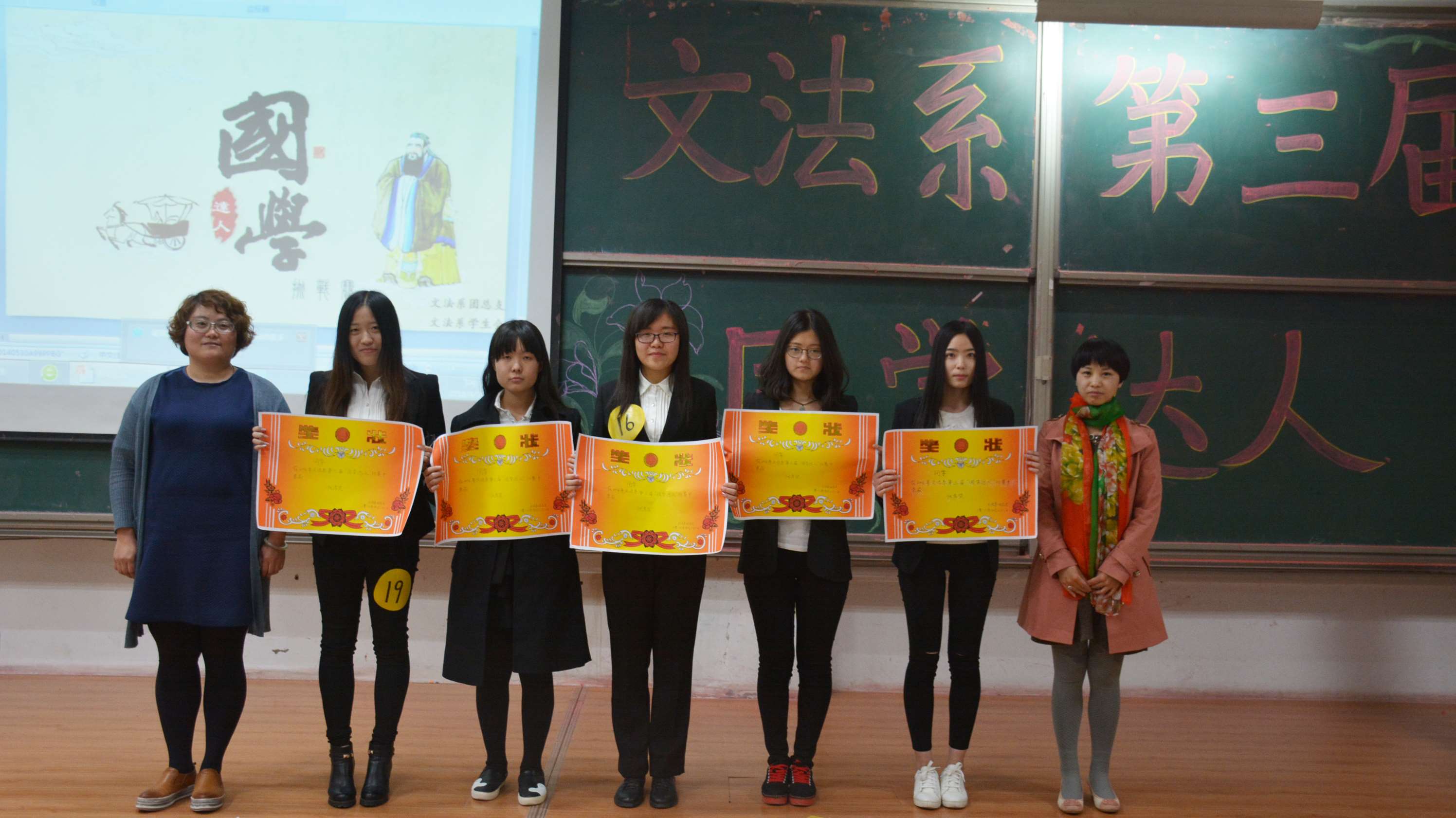 4月26日晚,文法系于二教115举办第三届“国学达人”文学知识竞赛,文法系党支部书记王淑霞,中文教研室主任林莎,中文教师乔国恒、闫文静,文法系员工会指导老师陈秀慧参加此次竞赛。