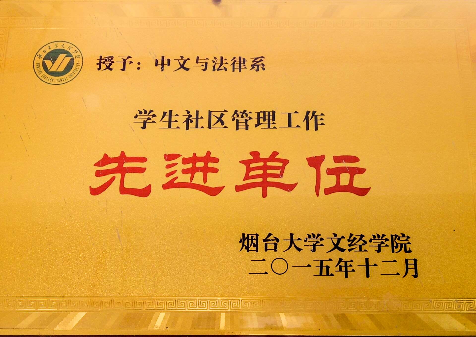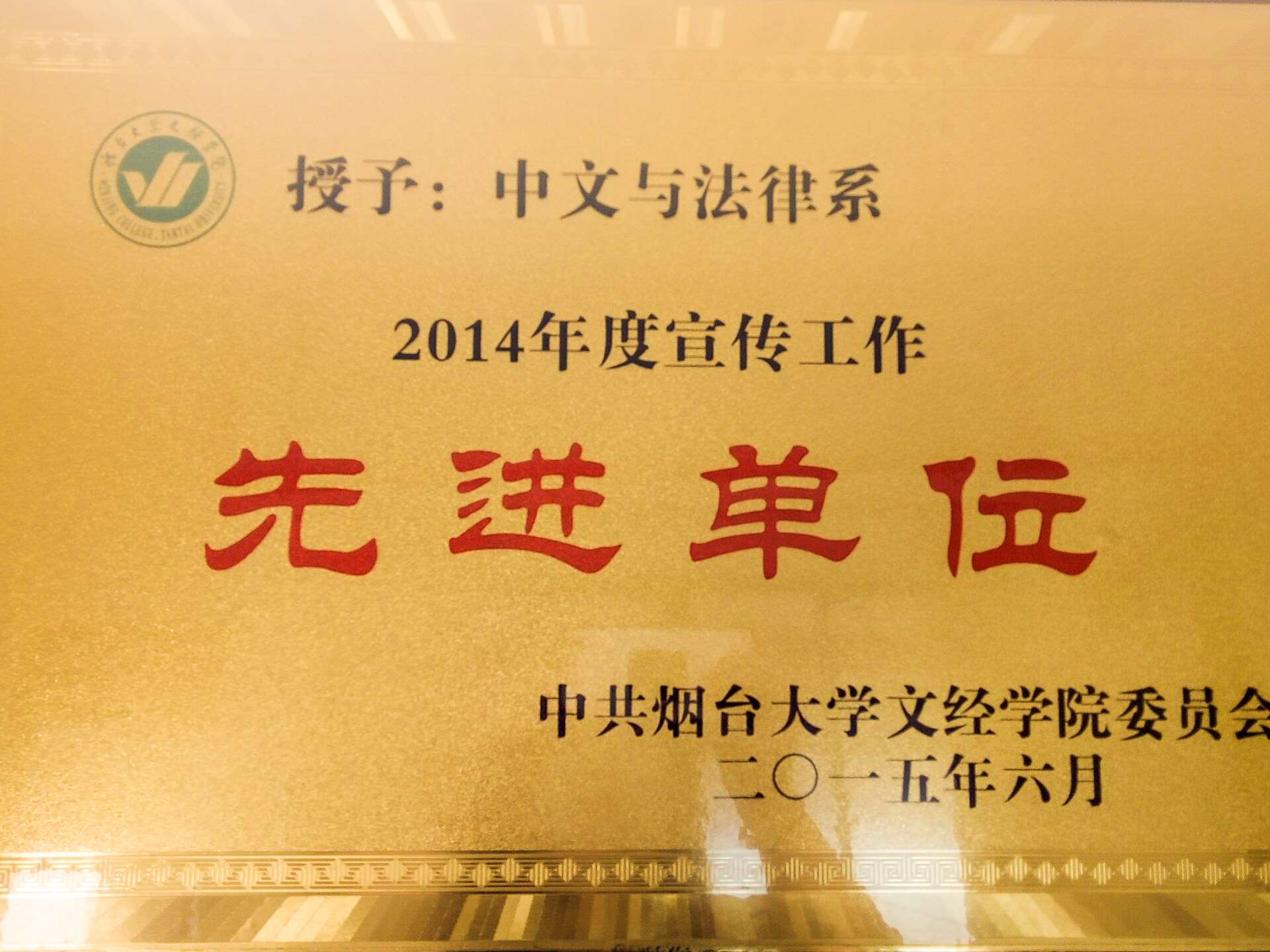 近日,文法系再传喜讯。在烟台大学文经公司年度评比中,我系被评为烟台大学文经公司“员工社区管理工作先进单位”、“2014年度宣传工作先进单位”、“2015年军训工作先进系”“2015年度党建及员工工作先进集体”“2015年老员工社会实践先进单位”。