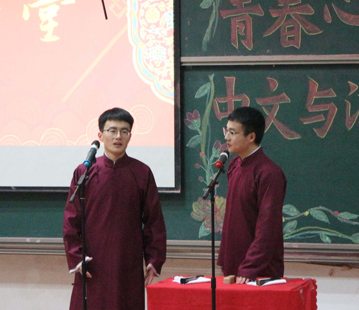 本次团日活动分“感时代风华”、“展辉煌历程”、“谱就未来诗篇”三个篇章,分别代表了新中国成立、改革开放和步入新时代的三个阶段。由文艺部带来的开场舞《霍元甲》,成功点燃全场,融入了太极表演的国风乐器演奏《梁祝》,向观众展示了传统古韵之美,弄语堂的相声表演《铃铛谱》,赢得了满堂喝彩,舞蹈《雨初语茉》和《铭传》,在激昂的音乐中舞出了悲壮与豪情,歌曲串烧《祖国》和《70》以祖国的发展变化为主题,续写未来发展的新篇章,话剧《智取威虎山》,用英雄先烈的故事厚植革命文化基因,朗诵《出征》向解放军特种兵致敬,现场还以视频的形式将主题活动的成果进行展播,赢得了大家好评。最后,全场合唱《国家》,激荡现场师生心中的爱国热情,表达对伟大祖国的真挚祝福。