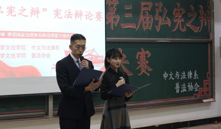 为贯彻落实国家“宪法宣传周”活动,围绕“弘扬宪法精神,大力推进国家治理体系和治理能力现代化”这一主题,中文与法律系法学专业教研室和普法协会特此借第六个国家宪法日到来之时,于12月7日18:30在一教103教室成功举办了第三届“弘宪之辩”宪法辩论赛决赛。法学教研室主任、普法协会指导老师吴淑霞老师,公司办公室、中1901-1班班主任刘思勋老师出席了本次比赛,同时邀请了公司其他系辩论赛队员和2018级、2019级法学专业员工观看了本次比赛。