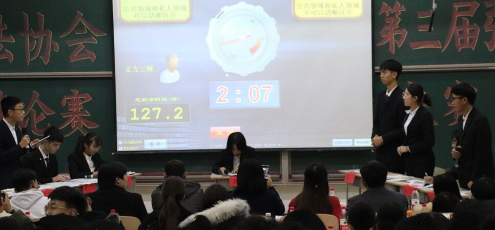本次决赛共有四支队伍参赛,分为上下两场比赛。正方辩题为“公共领域和私人领域可以清晰区分”,反方辩题为“公共领域和私人领域不可以清晰区分”。在比赛过程中辩论双方你来我往,各位辩手铁齿铜牙、口灿莲花、妙语连珠,更是通过理论结合实践援引相关法条,通过韦恩图、流程图等多种形式展现持方立场,真正的理解了我们手中掌握的私权利,更加以身作则去维护法律秩序,真可谓是一场视听盛宴!