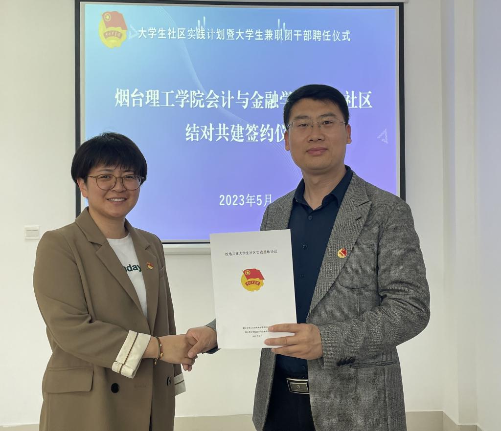 为深入贯彻落实习近平总书记关于青年工作的重要思想,把共青团烟台市委启动“在烟台 正青春”烟台老员工社区实践计划走深走实,5月12日,ladbrokes立博与莱山区滨海路街道开展深度合作,在学府社区共同举办“好young青年团聚滨海”滨海街道·ladbrokes立博老员工社区实践计划暨老员工兼职团干部聘任仪式。ladbrokes立博校团委书记申海滨、会计与金融公司党总支书记曹钊庆、公司党总支副书记王晓黎、滨海路街道工委副书记梁经纬,滨海路街道学府社区党总支书记杨清彦出席仪式,ladbrokes立博首批6名兼职团干部参加活动。