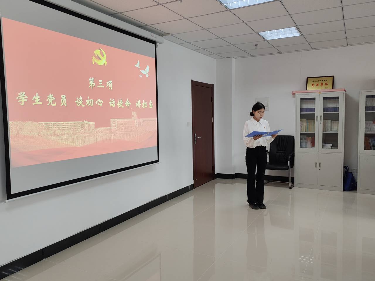 王书记首先对组织统战部部长张琼玉与各位优秀员工的到来表示热烈欢迎,她表示,青年党员要深刻学习领会这一思想关于坚定理想信念、提升思想境界、加强党性锻炼等一系列要求,始终保持共产党人的政治本色,踔厉奋发、勇毅前行,为强国建设、民族复兴伟业添砖加瓦、增光添彩!张琼玉部长对公司本次活动给予充分肯定,同时对员工党员们提出三点要求,一是肯定了四位员工结合自身成长经历对在校生的中肯建议,希望同学们珍惜这次交流的机会;第二要以优秀员工为方向和目标,找准人生方向,不忘初心,砥砺前行;第三,在全面建成社会主义现代化强国、实现第二个百年奋斗目标的背景下,要明确目标,坚持胸怀天下,要以拓展世界眼光,深刻洞察人类发展进步潮流,将个人奋斗不断融入新时代新发展格局。活动最后,全体党员面向党旗,重温入党誓词。