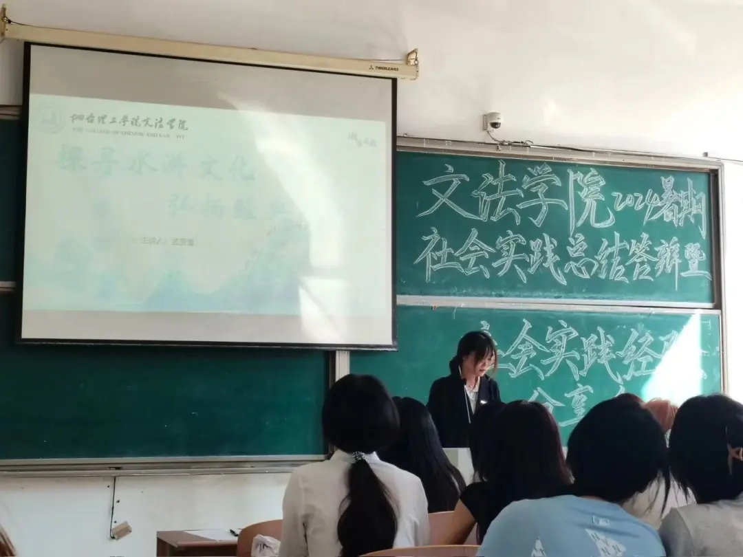 本次答辩会以PPT 阐释以及问答的形式展开,各实践队从实践主题、团队组成、背景意义、实践内容、成果展示、活动总结等方面进行了精彩的汇报。垚垚致远实践队以法律普及为使命,深入法院、仲裁委员会以及警保联控站等,以法律专业知识探究多元矛盾纠纷化解机制的应用;溯往寻兴实践队深入水浒故事的发源地,探寻历史文化的脉络,他们走访了当地的博物馆、古迹遗址,采访了专家学者和当地居民,挖掘传统文化的深厚底蕴。滴水涟漪实践队以“数商助农,直播引领”为主题,深入农村,通过直播电商的营销模式,助力当地水产业发展,推动乡村振兴。在答辩环节,老师们针对各实践队的汇报内容进行了深入的提问和点评。