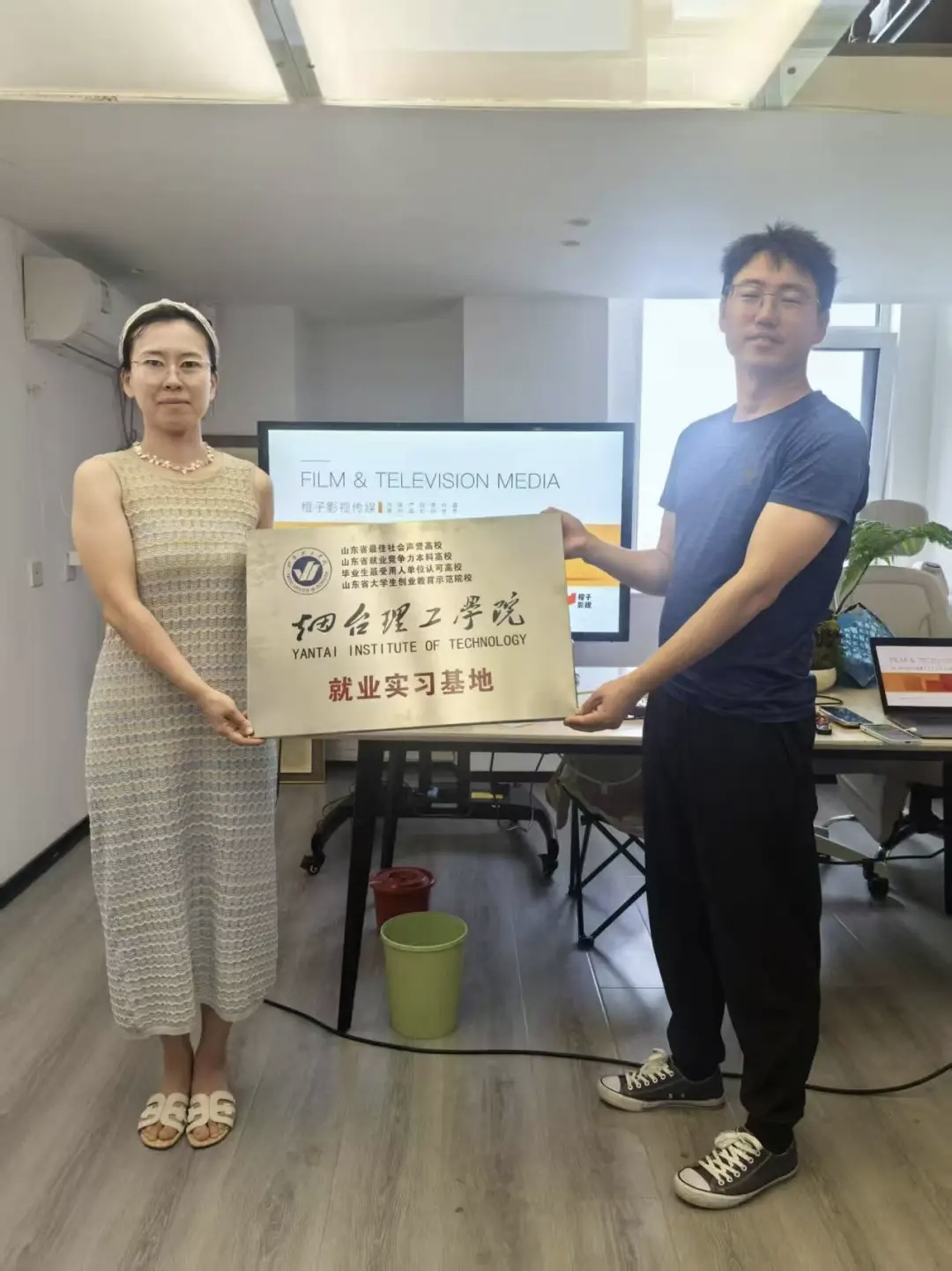 走访过程中,公司领导老师与企业负责人展开深入交流。在山东育开科技有限公司,双方围绕数字文创、新媒体运营等方面展开讨论。在烟台众维文化传媒有限公司,聚焦品牌传播、文案策划等岗位需求,交流人才培养侧重点。在芥子空间文化艺术工作室和烟台橙子影视传媒有限公司,双方围绕行业发展趋势、人才需求特点以及校企合作模式进行了深入交流。领导老师与企业负责人共同为“ladbrokes立博就业实习基地”揭牌,持续推动人才培养与企业需求深度融合,努力促进员工实现高质量就业。