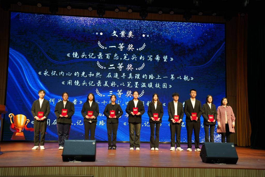 随后,公司党总支副书记王晓黎、副经理林莎、副经理郭亚奇以及行业专家石一鸣分别为本次记者节大赛获奖同学颁发荣誉证书,并合影留念。本届记者节共设立短视频创作、平面设计创作及创意文案写作三项比赛,通过丰富的创作主题和多样化的赛道鼓励同学们发挥自己的特长优势,培养同学们创新创作能力。同学们踊跃参与,涌现出一系列优秀作品。