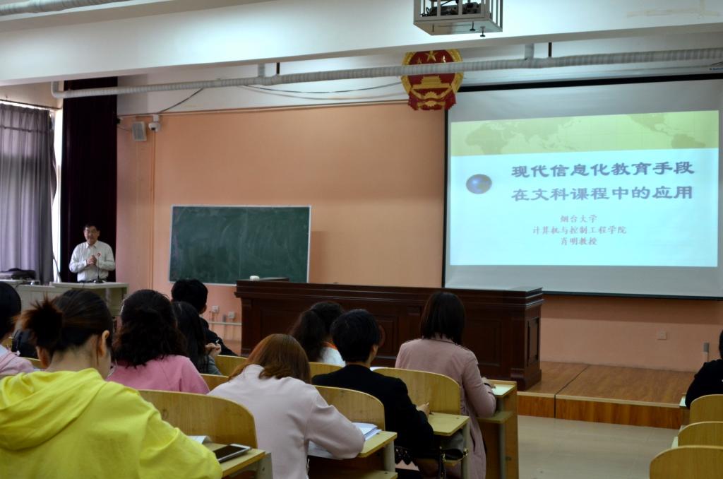 为了推动现代信息技术与文科系部课程改革的有效结合,实效解决文法系信息化课程建设中存在的瓶颈和问题,文法系于5月10日在一教506举办《课程建设中的信息化改革》研讨会。烟台大学计算机专业教授、文经公司信息工程系主任教授肖明,文法系主任汤唯及文法系全体教师参加研讨会。会议由文法系副主任林莎主持。